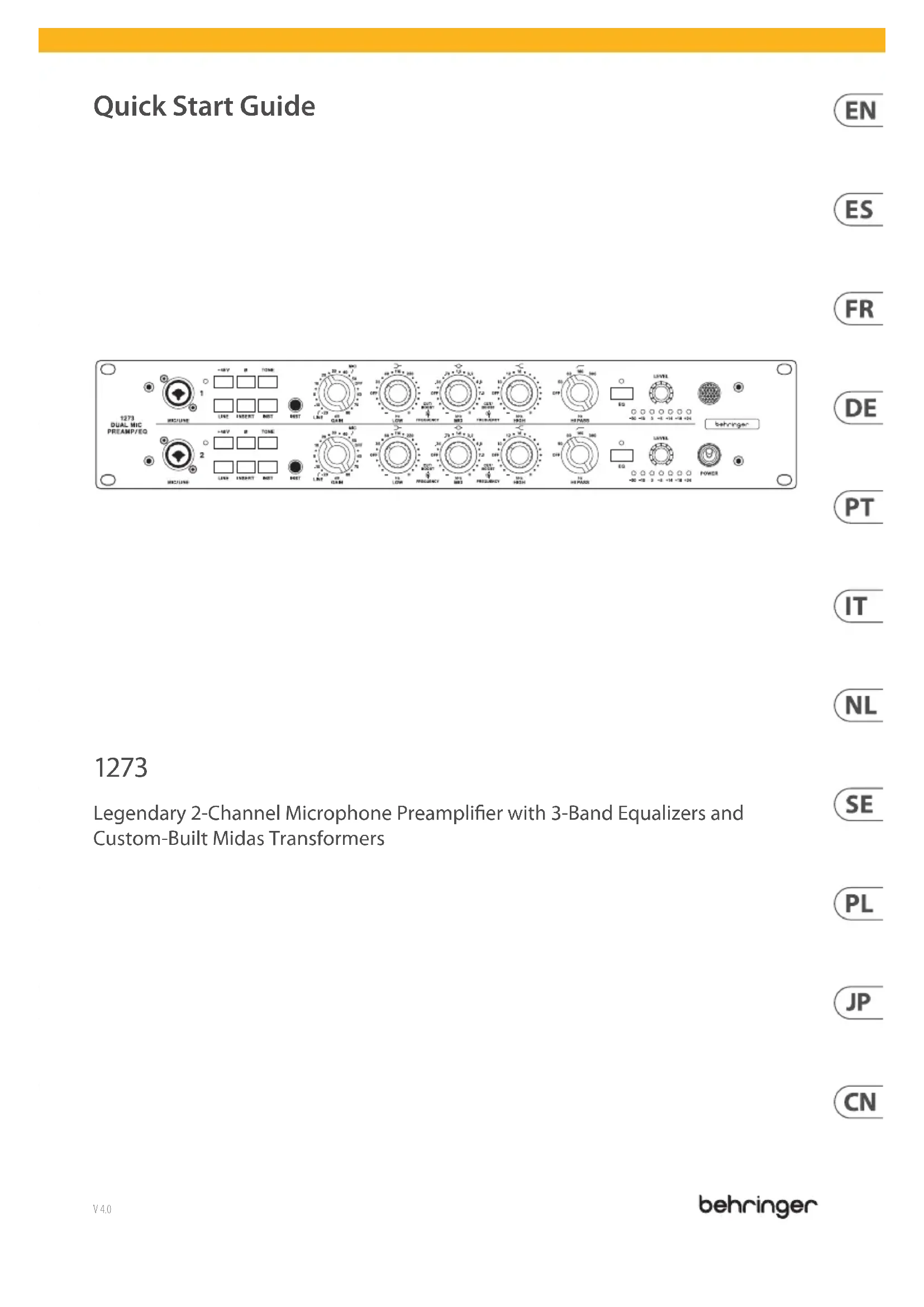 Retrouvez gratuitement la notice de l'appareil 1273 BEHRINGER au format PDF.