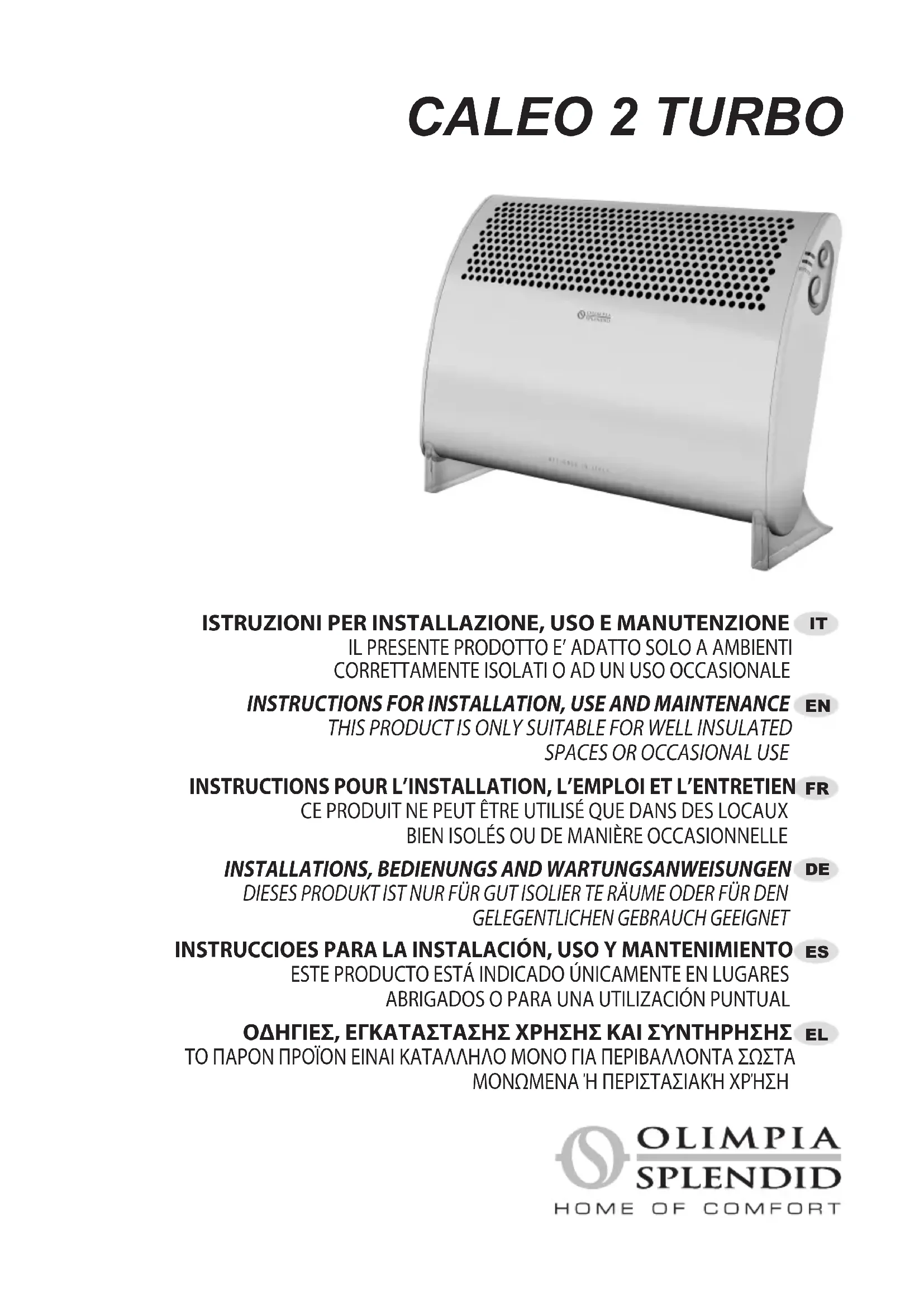 Retrouvez gratuitement la notice de l'appareil Caleo 2 Turbo OLIMPIA SPLENDID au format PDF.
