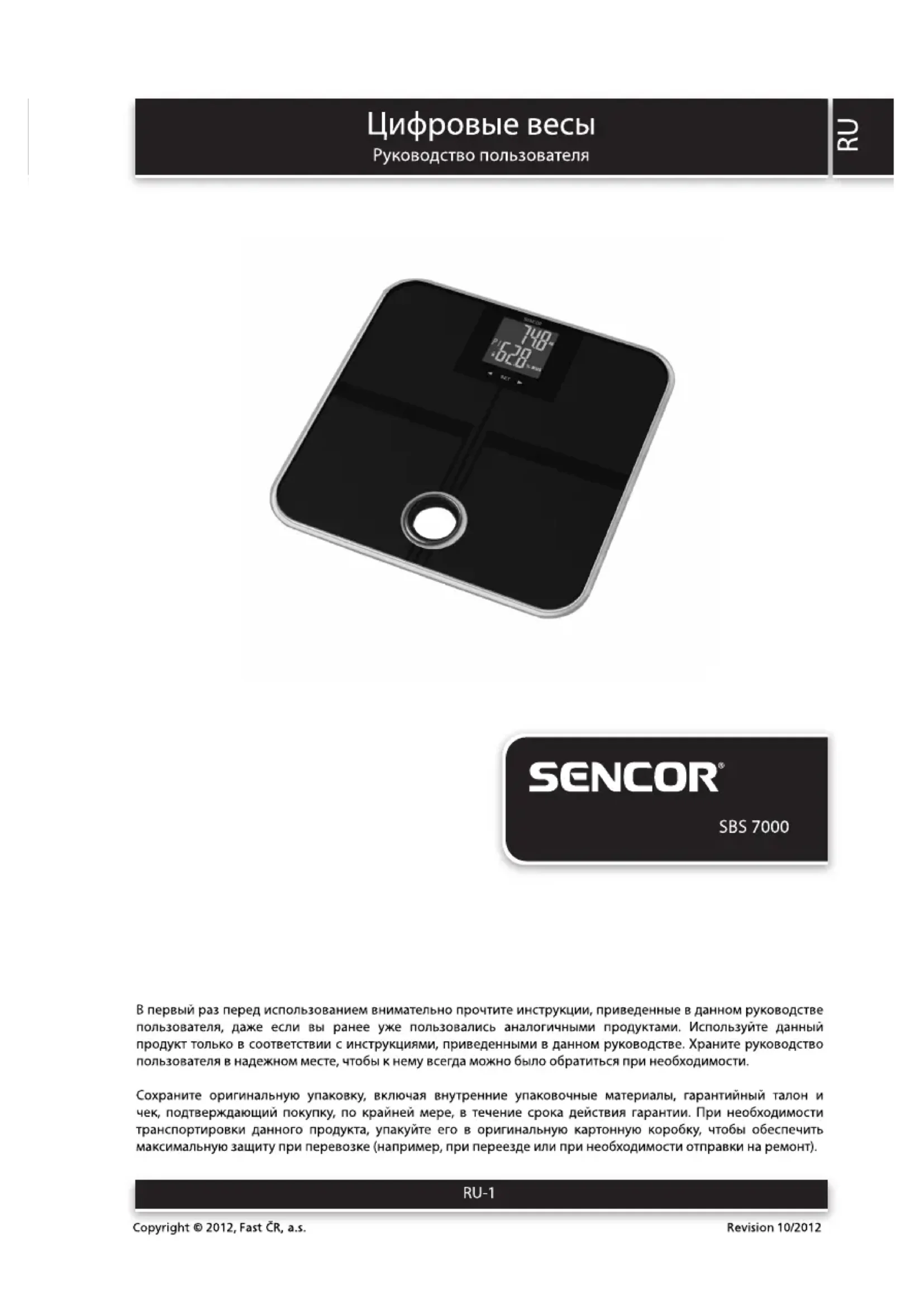 SBS 7000 - Balance SENCOR - Notice d'utilisation et mode d'emploi gratuit