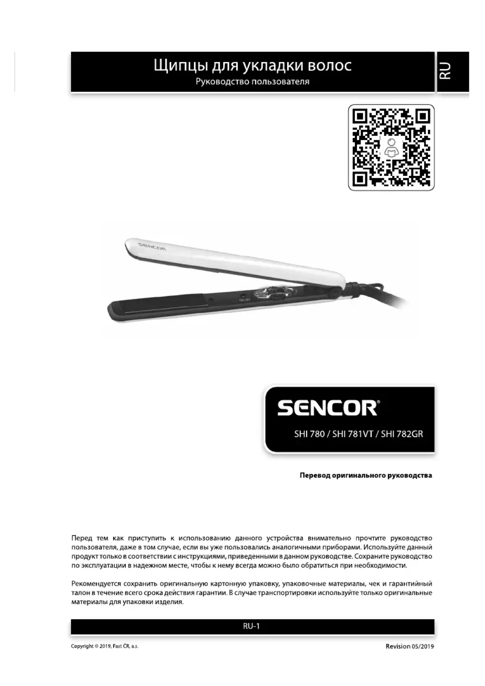 SHI 782GR - Lisseur SENCOR - Notice d'utilisation et mode d'emploi gratuit