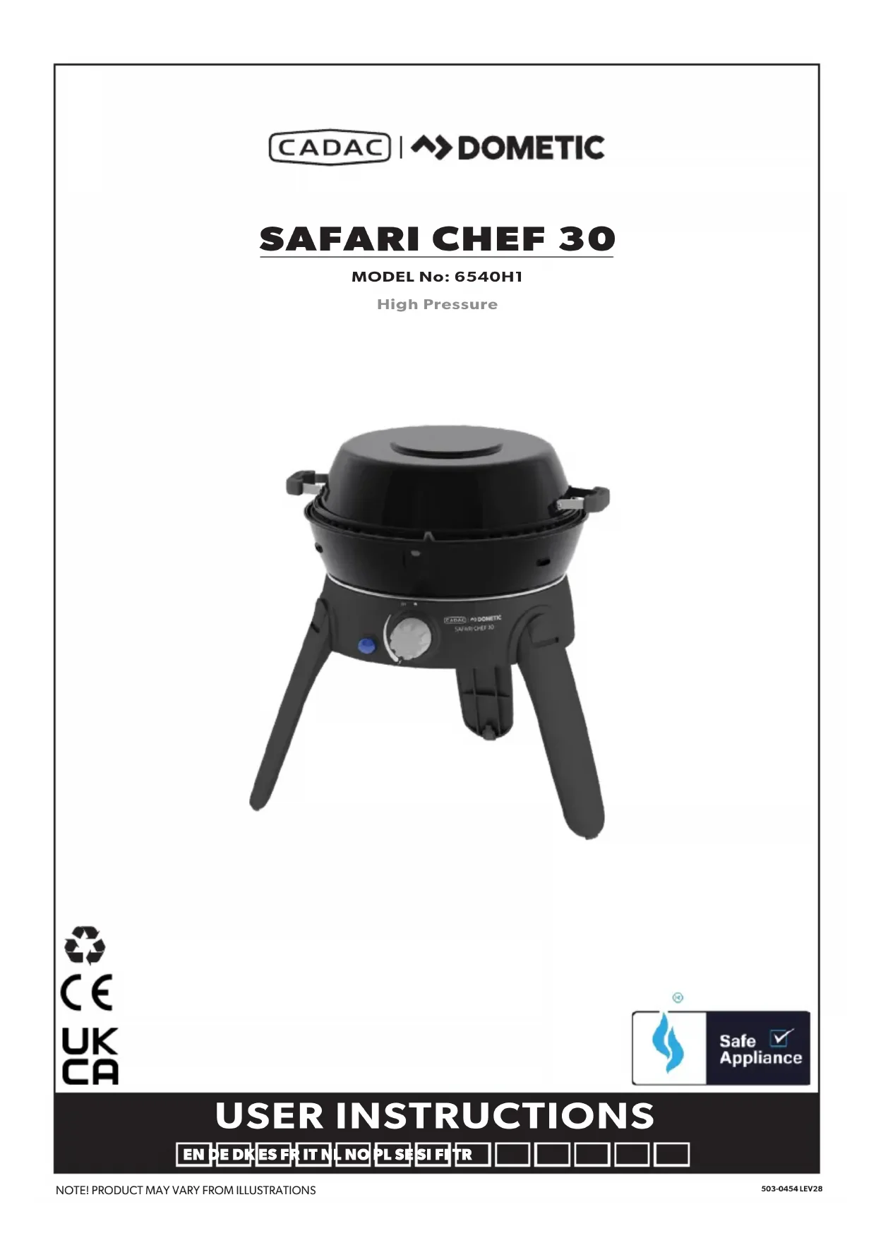 Retrouvez gratuitement la notice de l'appareil Safari Chef 30 HP CADAC au format PDF.