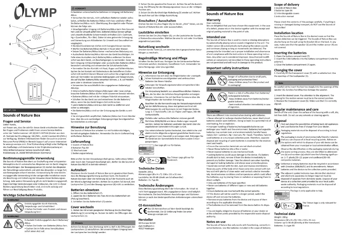 Sounds of Nature Box - Non catégorisé OLYMPIA - Notice d'utilisation et mode d'emploi gratuit