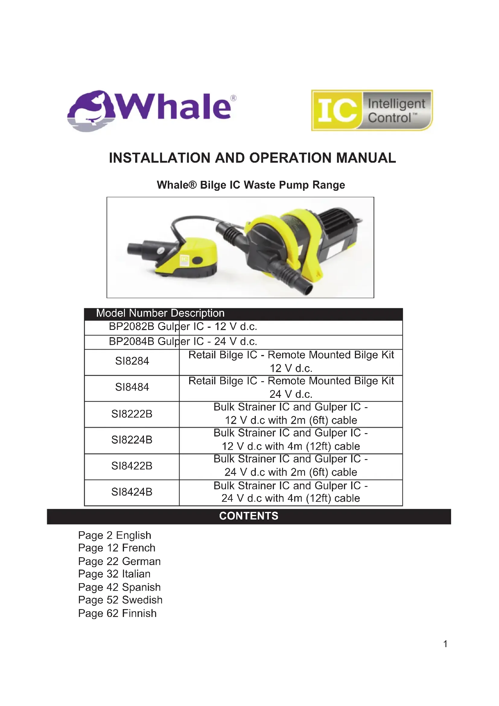 Retrouvez gratuitement la notice de l'appareil Bilge IC Whale au format PDF.
