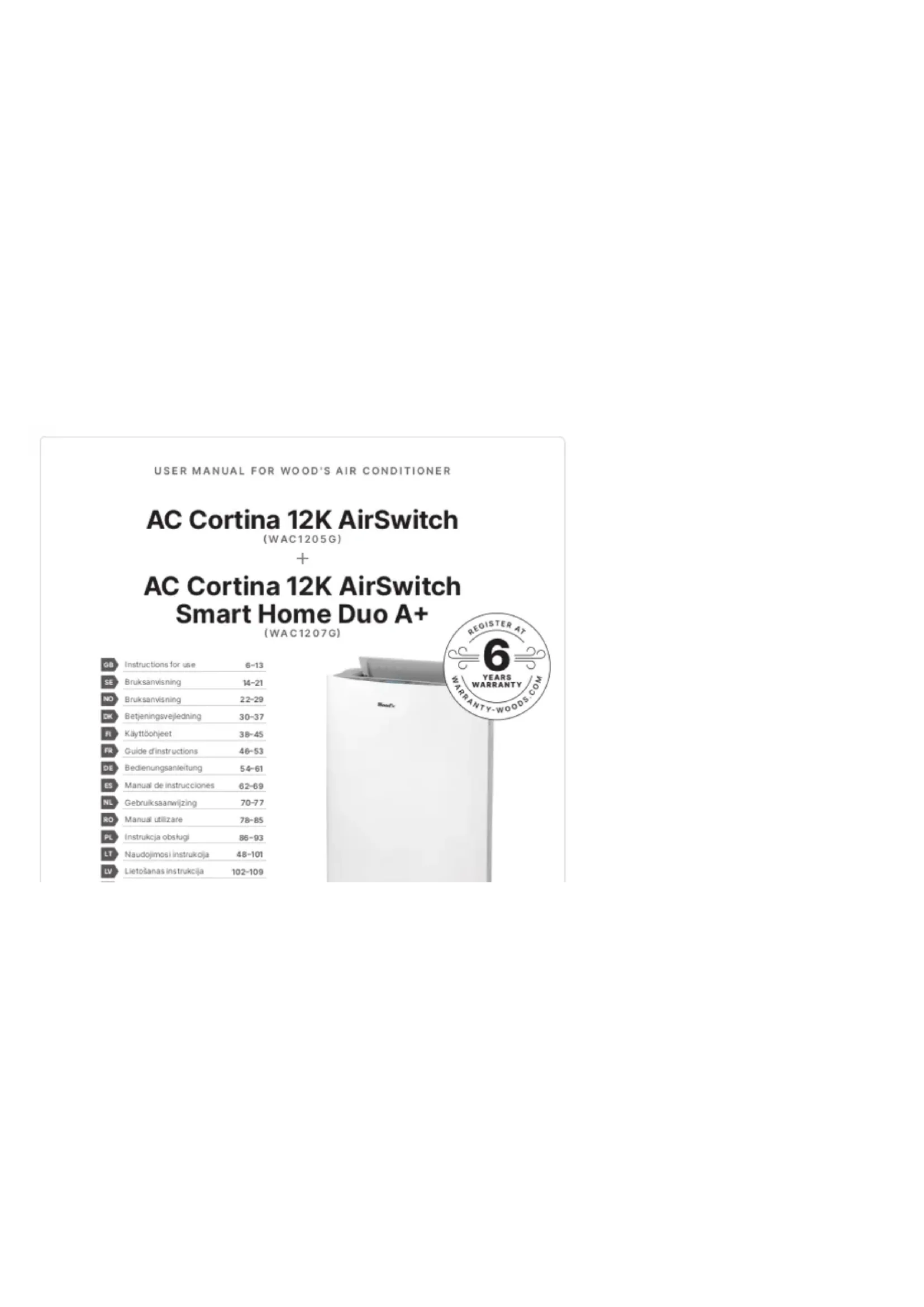 AC Cortina 12K AirSwitch - Climatisation Wood's - Notice d'utilisation et mode d'emploi gratuit