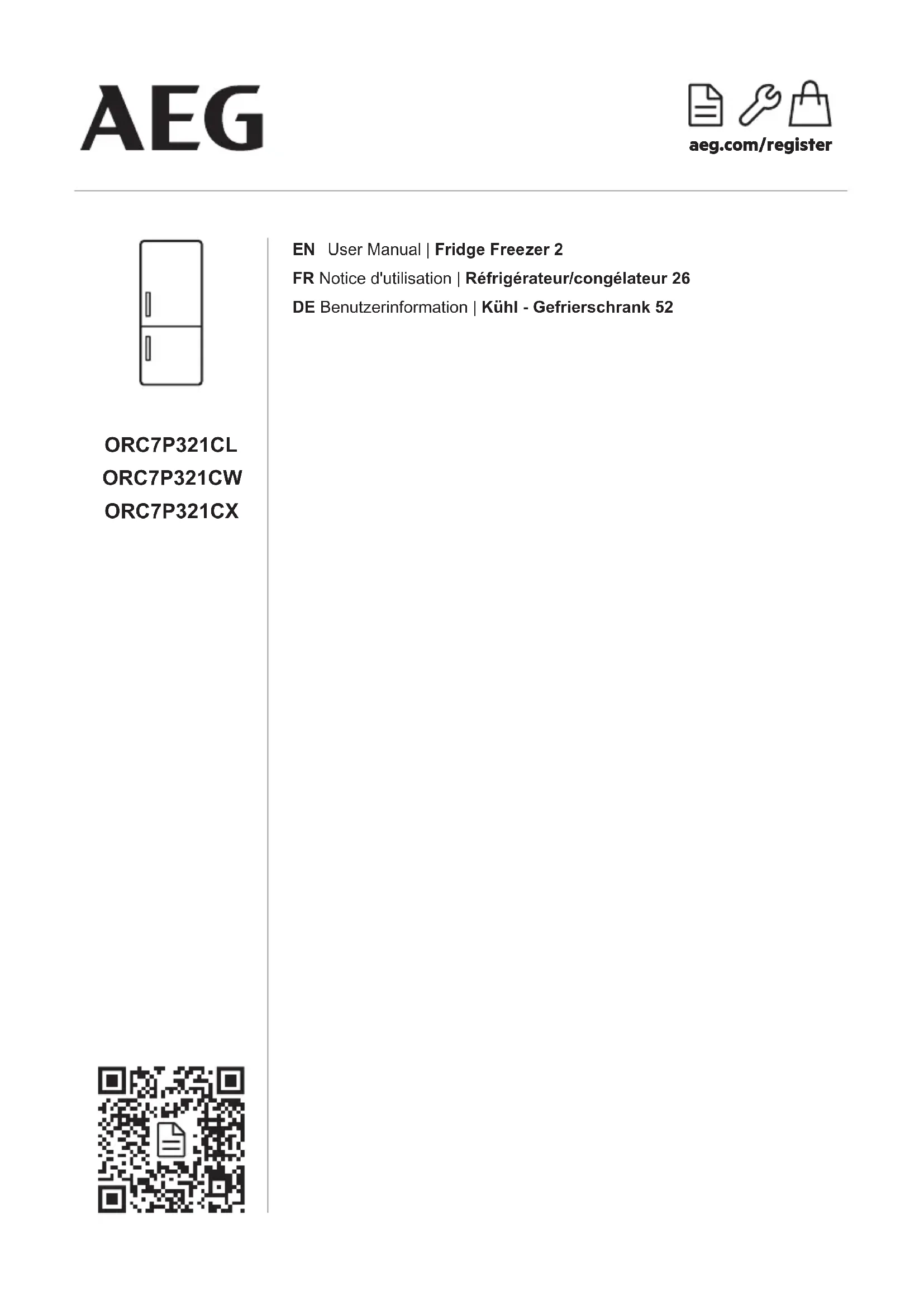 ORC7P321CX - Réfrigérateur AEG - Notice d'utilisation et mode d'emploi gratuit