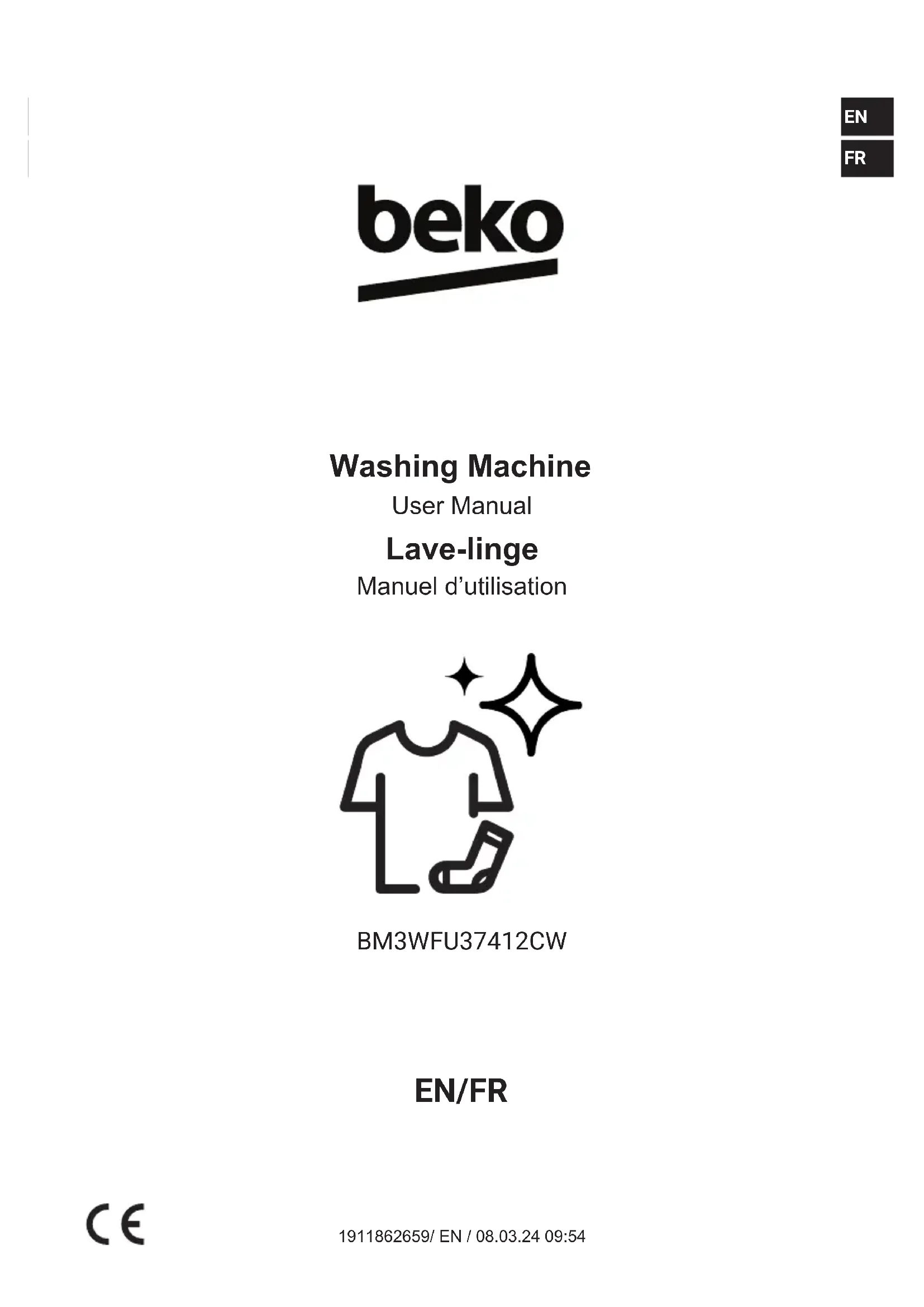 BM3WFU37412CW - Machine à laver BEKO - Notice d'utilisation et mode d'emploi gratuit