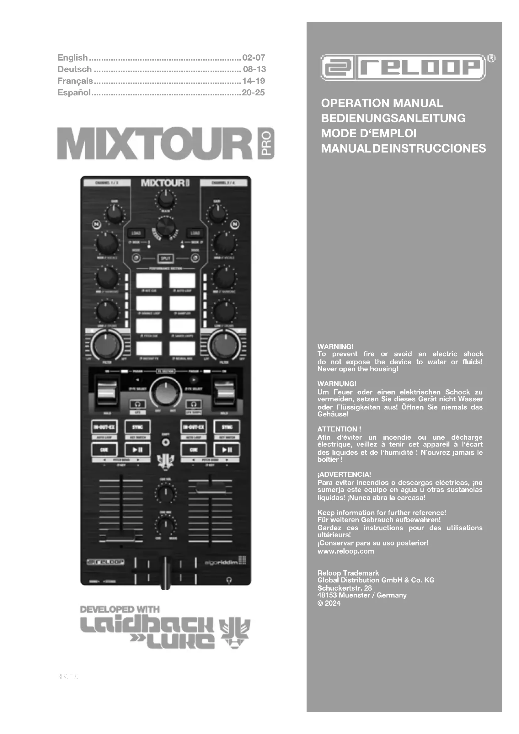Mixtour Pro - Equipement DJ Reloop - Notice d'utilisation et mode d'emploi gratuit