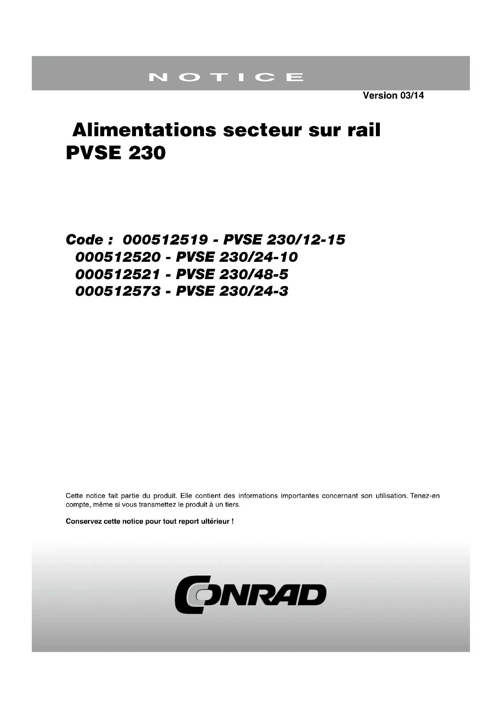 MODE D'EMPLOI PVSE 230/24-10 Block