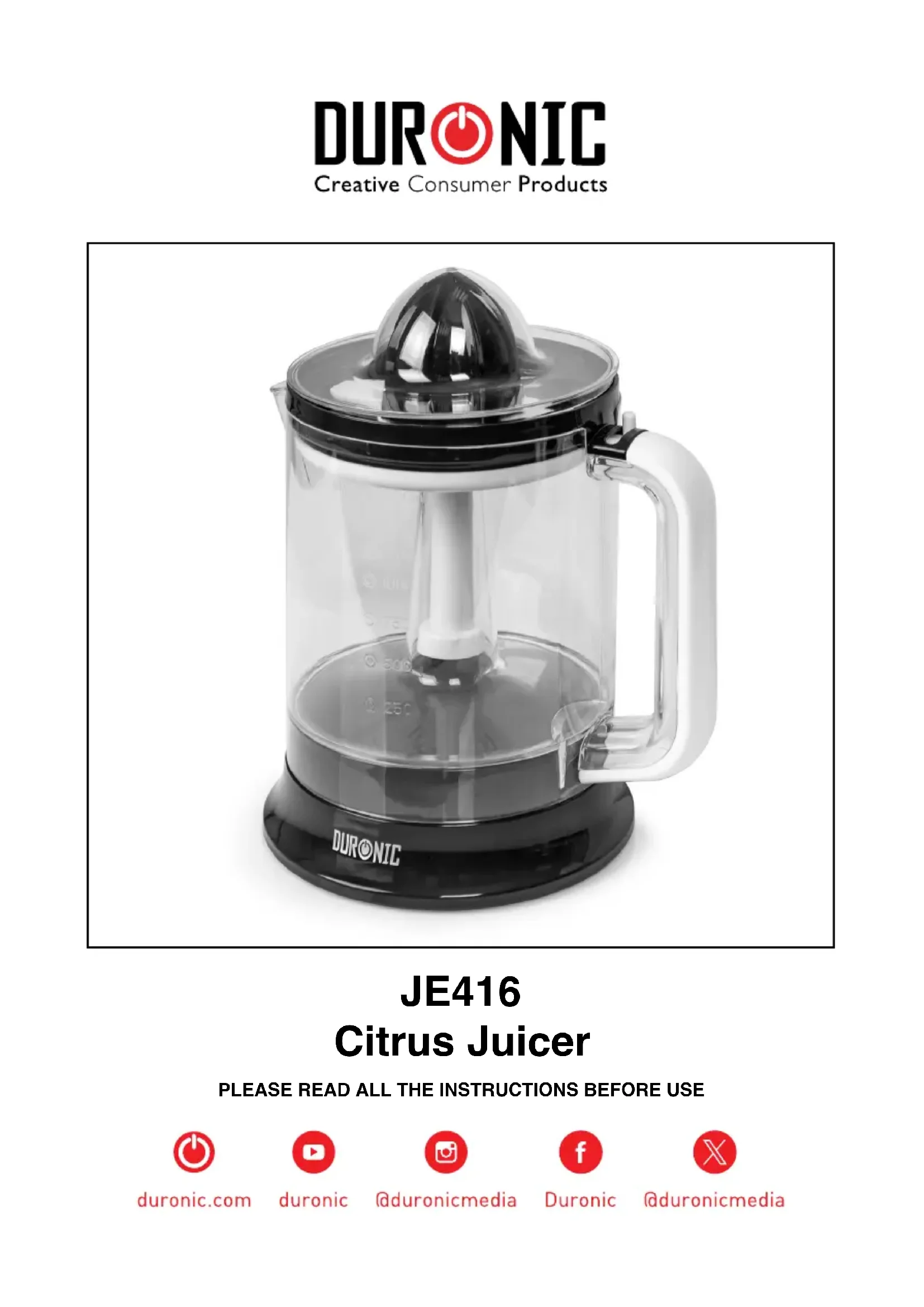 Retrouvez gratuitement la notice de l'appareil JE416 Duronic au format PDF.