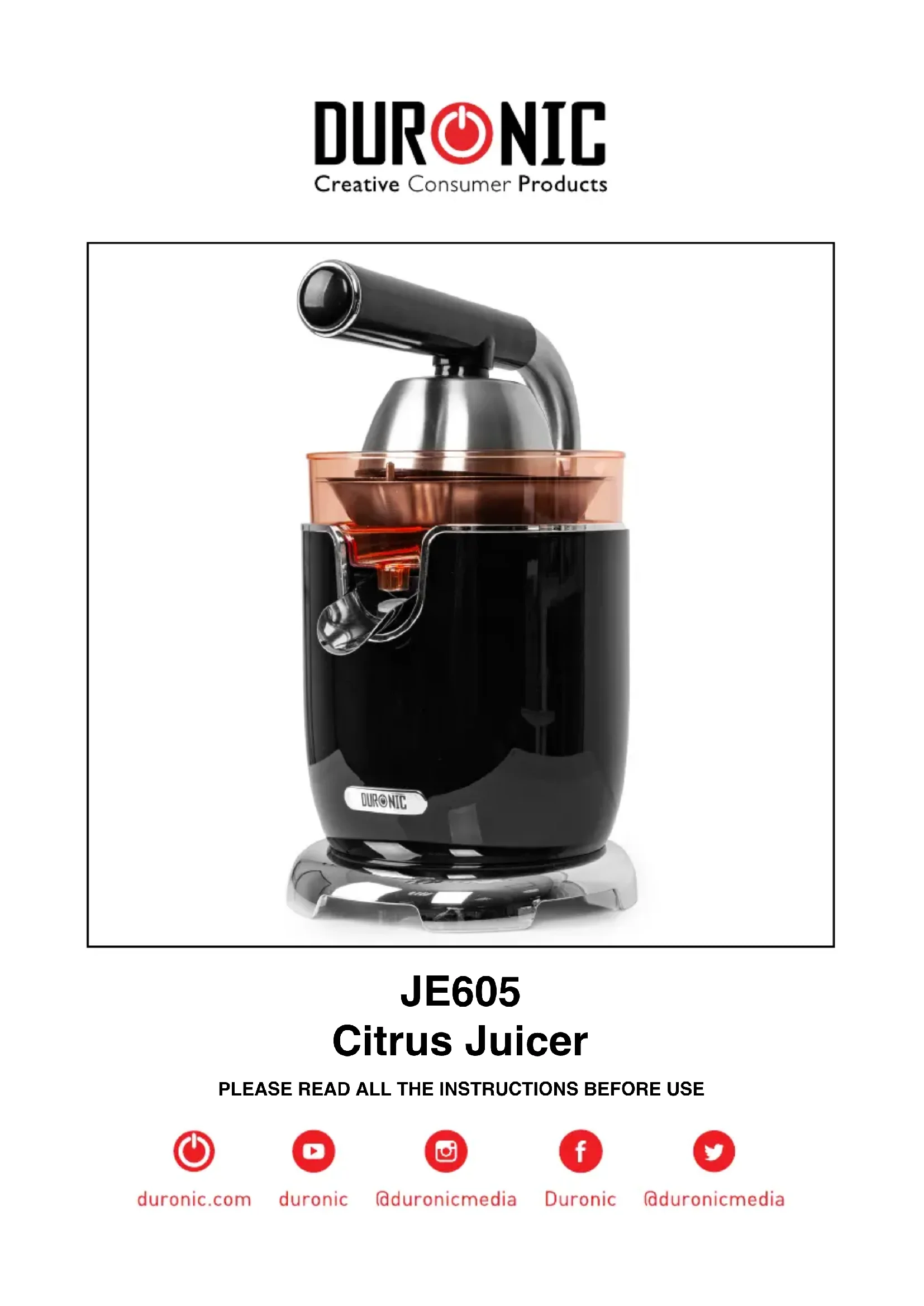 Retrouvez gratuitement la notice de l'appareil JE605 Duronic au format PDF.
