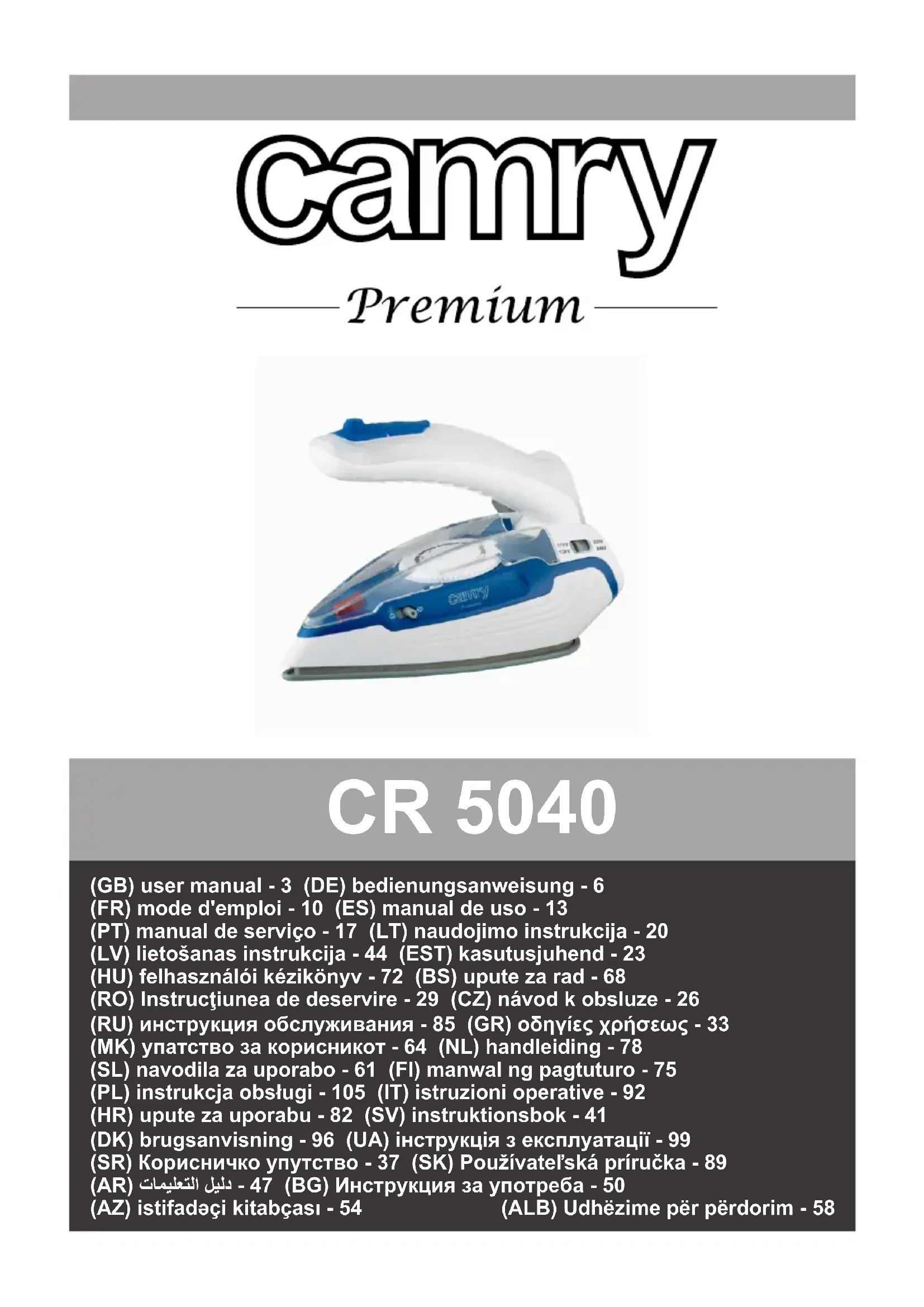 CR 5040 - Fer à repasser CAMRY - Notice d'utilisation et mode d'emploi gratuit