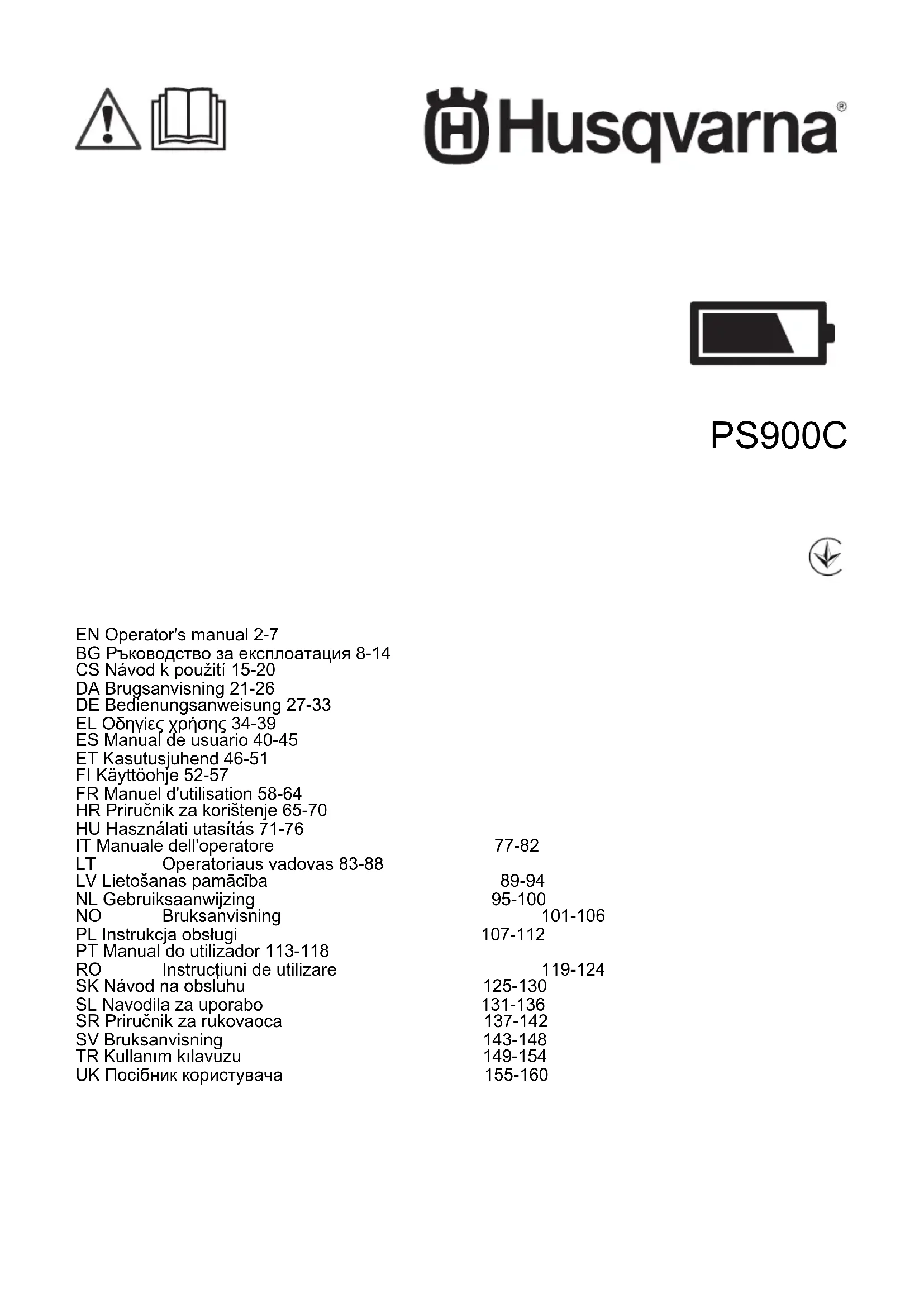 Retrouvez gratuitement la notice de l'appareil PS900C HUSQVARNA au format PDF.