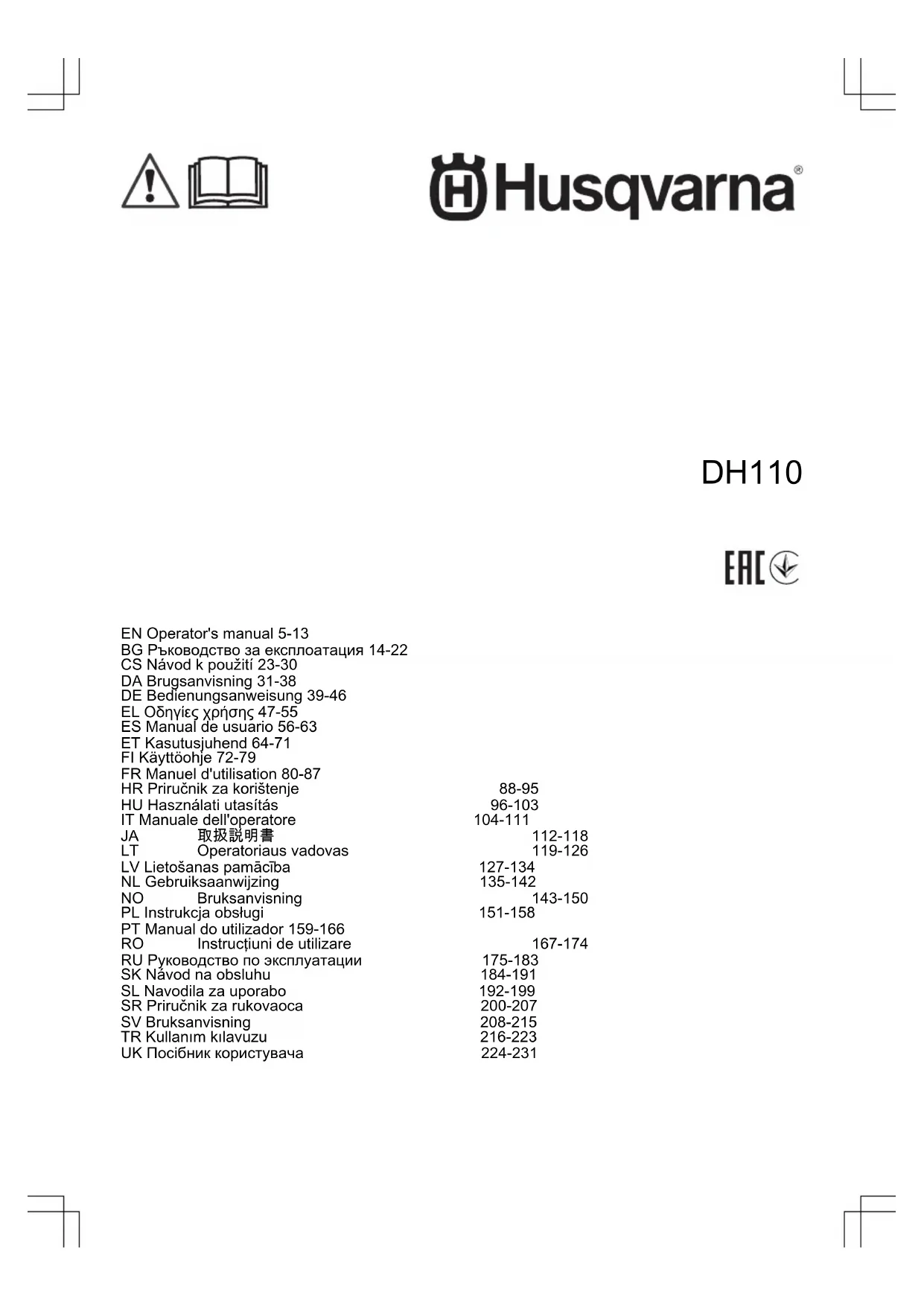 Retrouvez gratuitement la notice de l'appareil DH110 HUSQVARNA au format PDF.