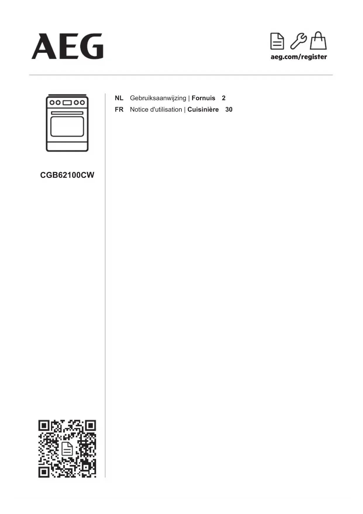 CGB62100CW - Cuisinière AEG - Notice d'utilisation et mode d'emploi gratuit