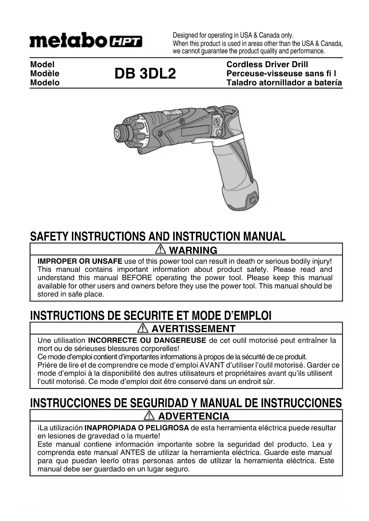 MODE D'EMPLOI DB3DL2 HiKOKI