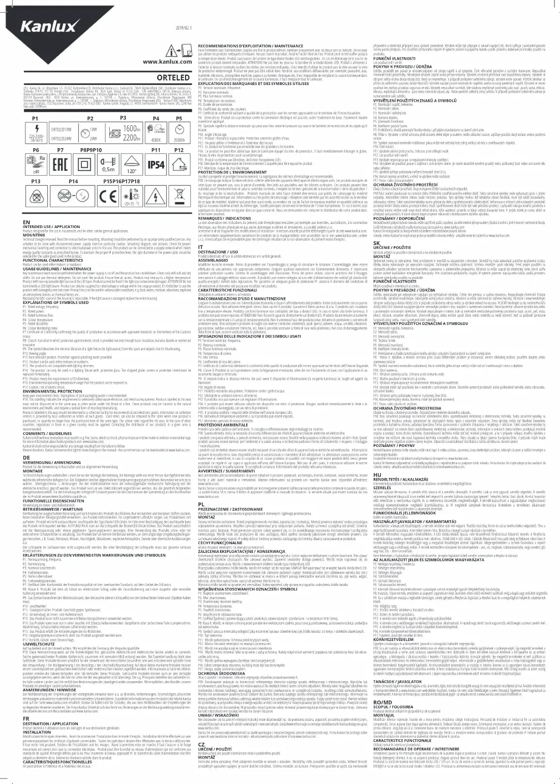 Gardez la proprété et protégez l’environnement. La segrégation des déchets d'emballage est recommandée. P18: Ce marquage indique la nécessité de la collecte selective des appareils électriques et électroniques usés. Les produits marqués de cette façon ne peuvent pas, sous la peine d'amende, être jetés aux poubelles avec les déchets ordinaires. Ces produits peuvent être nuisibles pour l’environnement et pour la santé des hommes, il exigent les formes spéciales de la transformation / de la récupération / du recyclage et de la neutralisation. Produits marqués de cette façon doivent être rendus aux points de ramassage du matériel électrique et électronique usé. Informations sur les points de ramassage / réception sont données par les autorités locales ou le vendeur de ce type de matériel. Matériel usé peut être aussi rendu au vendeur en cas de l’achat de nouveau matériel en quantité inférieur ou égal au nouveau matériel acheté du même type. Susdits principes concernent le territoire de l’Union Européenne. En cas d’autres pays appliquer les dispositions en vigueur dans un pays concerné. Nous recommandons de contacter le distributeur de notre produit dans le territoire concerné. REMARQUES / INDICATIONS La non observation des indications du présent, ode d'emploi peut entraîner par exemple aux incendies, aux brûlures, à la commotion électrique, aux lésions physiques et aux autres dommages matériels et immateriels. La société Ledem s.r.o. se réserve le droit d'apporter des modications à l'instruction - la version actuelle peut être téléchargée à partir du site www.kanlux.com. Les informations supplémentaires concérnant les produits de la marque Miledo sont accessibles sur le site: www.kanlux.com. Ledem s.r.o. n’encourt pas de responsabilité pour les dommages résultant de la non observation du présent mode d’emploi.
