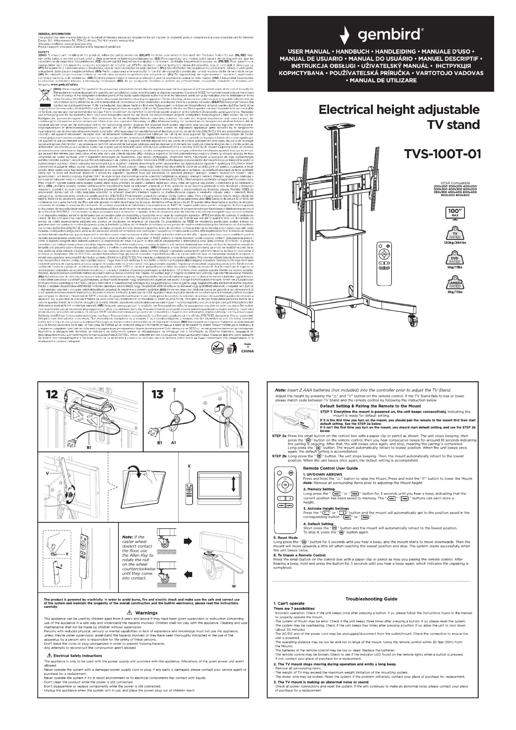 TVS-100T-01 - Meuble TV Gembird - Notice d'utilisation et mode d'emploi gratuit