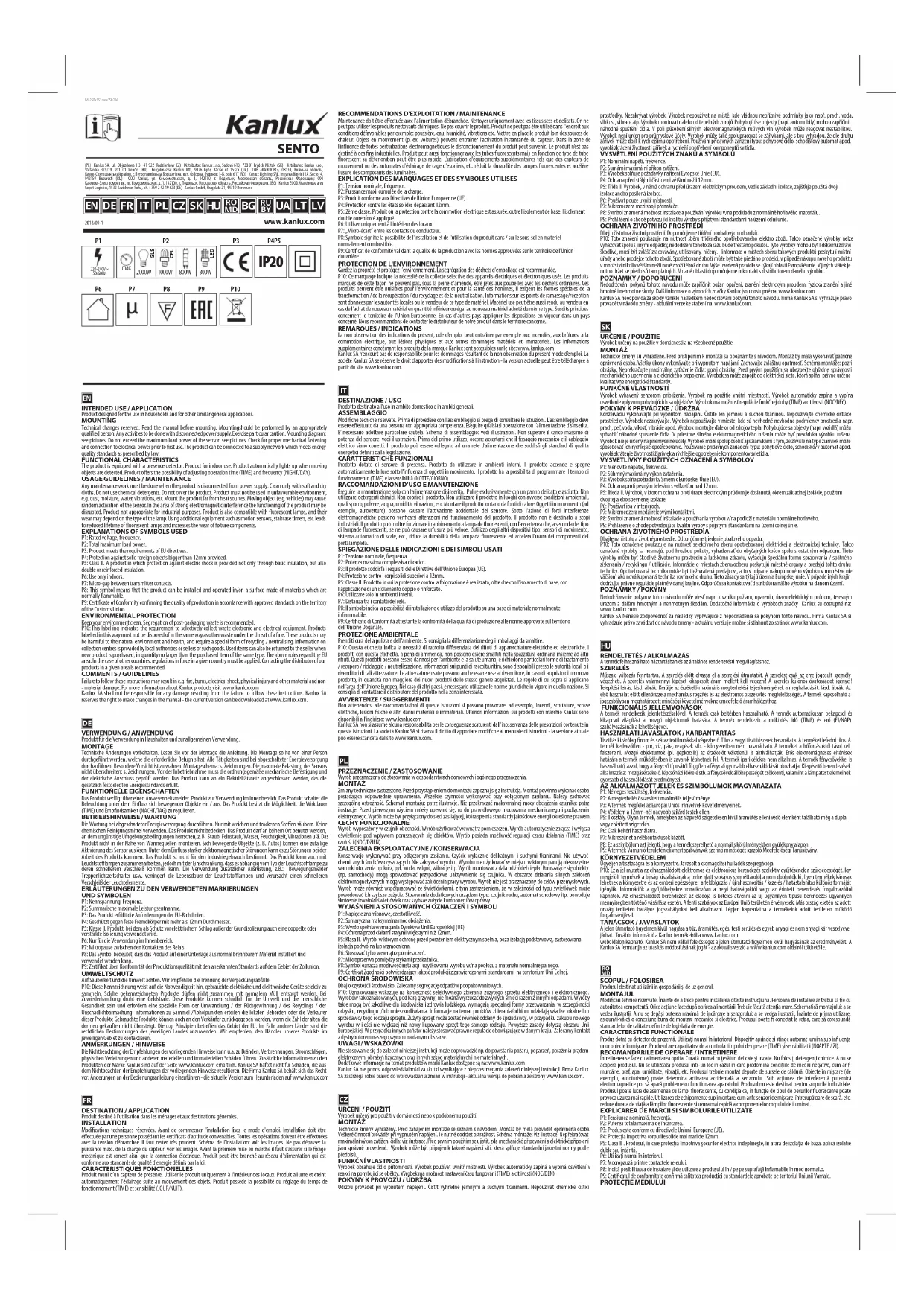 Retrouvez gratuitement la notice de l'appareil SENTO Kanlux au format PDF.