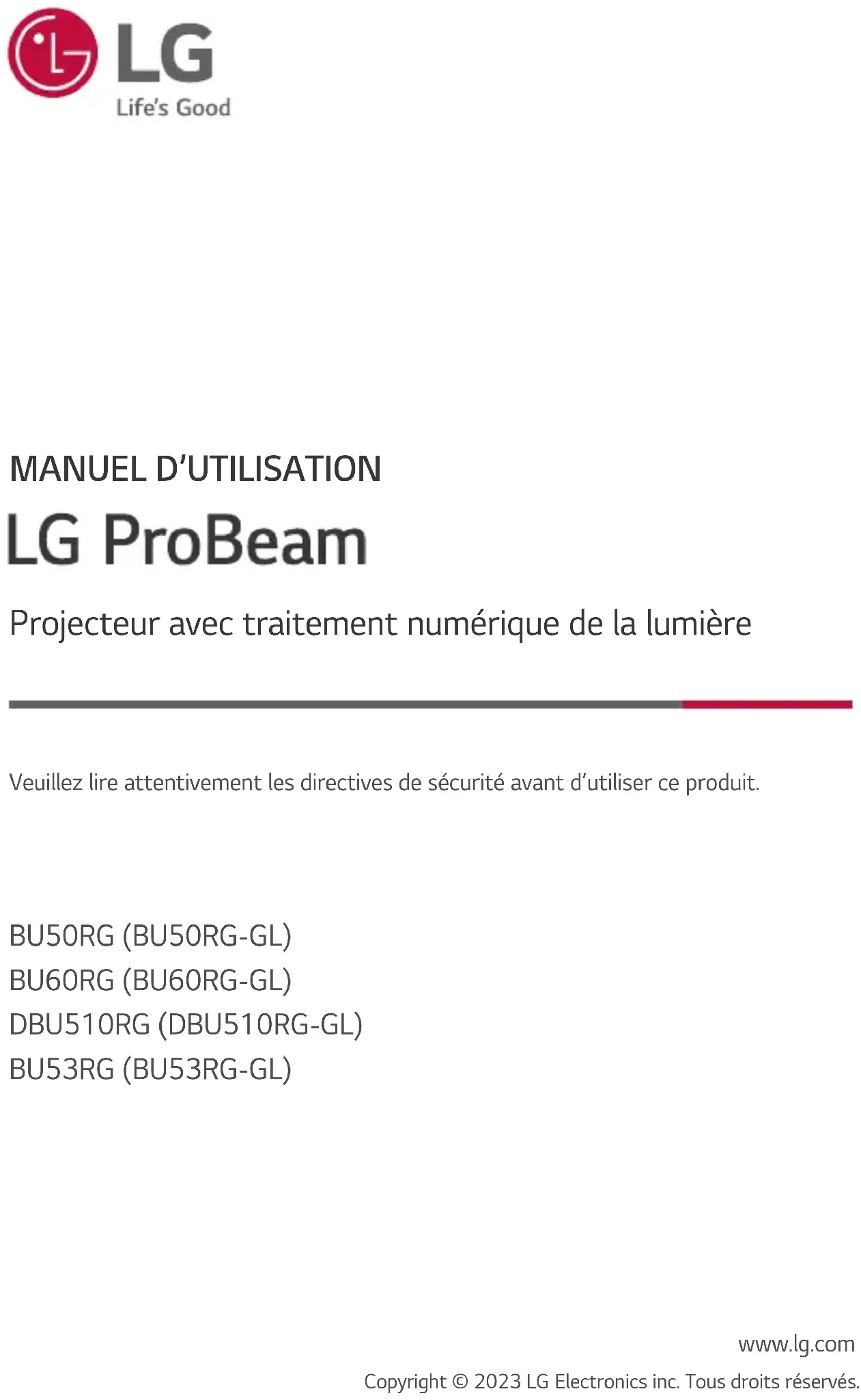 Retrouvez gratuitement la notice de l'appareil ProBeam BU50RG LG au format PDF.