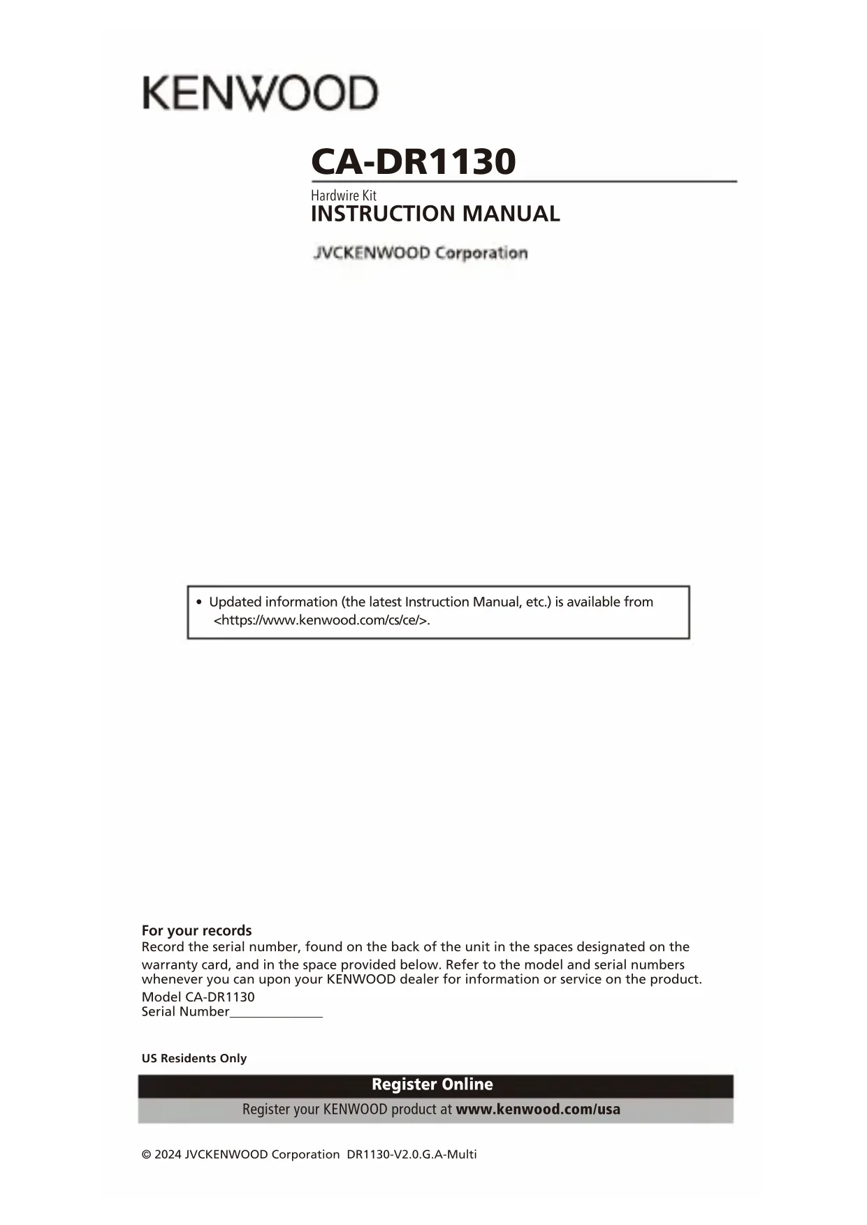 Retrouvez gratuitement la notice de l'appareil CA-DR1130 KENWOOD au format PDF.