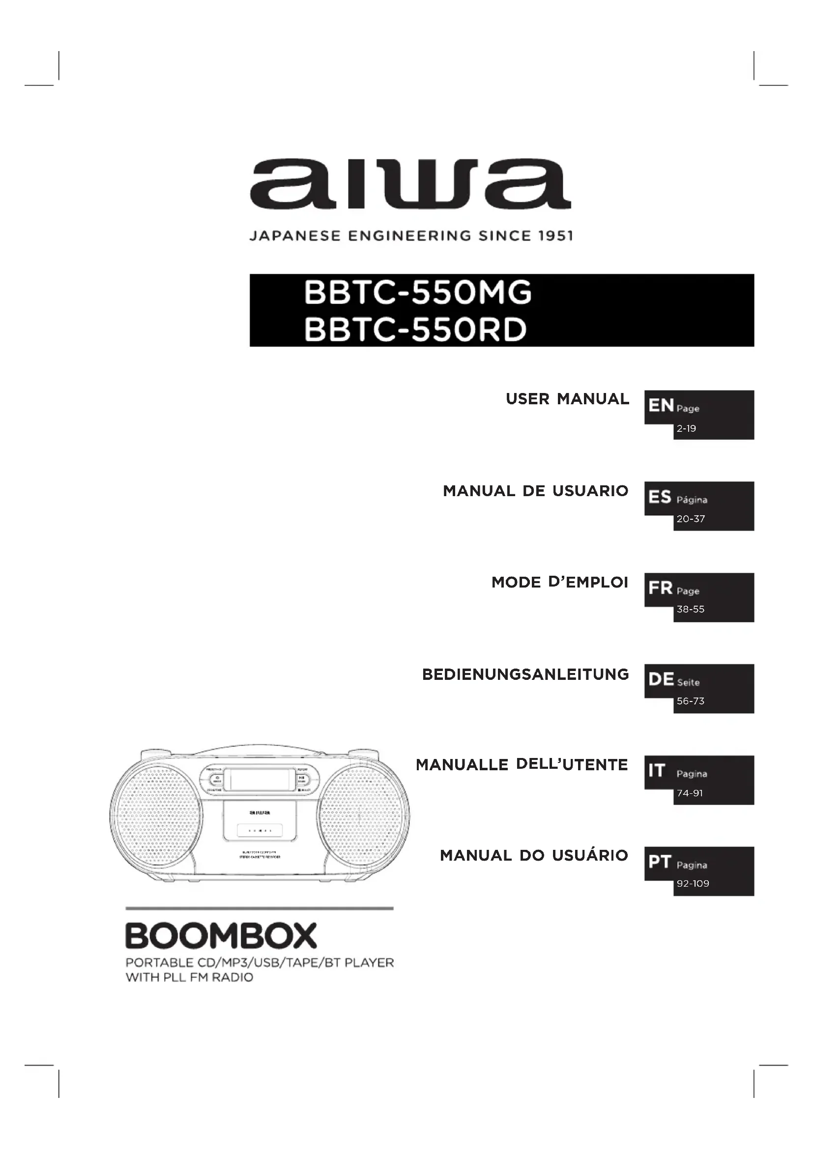 Retrouvez gratuitement la notice de l'appareil BBTC-550 AIWA au format PDF.