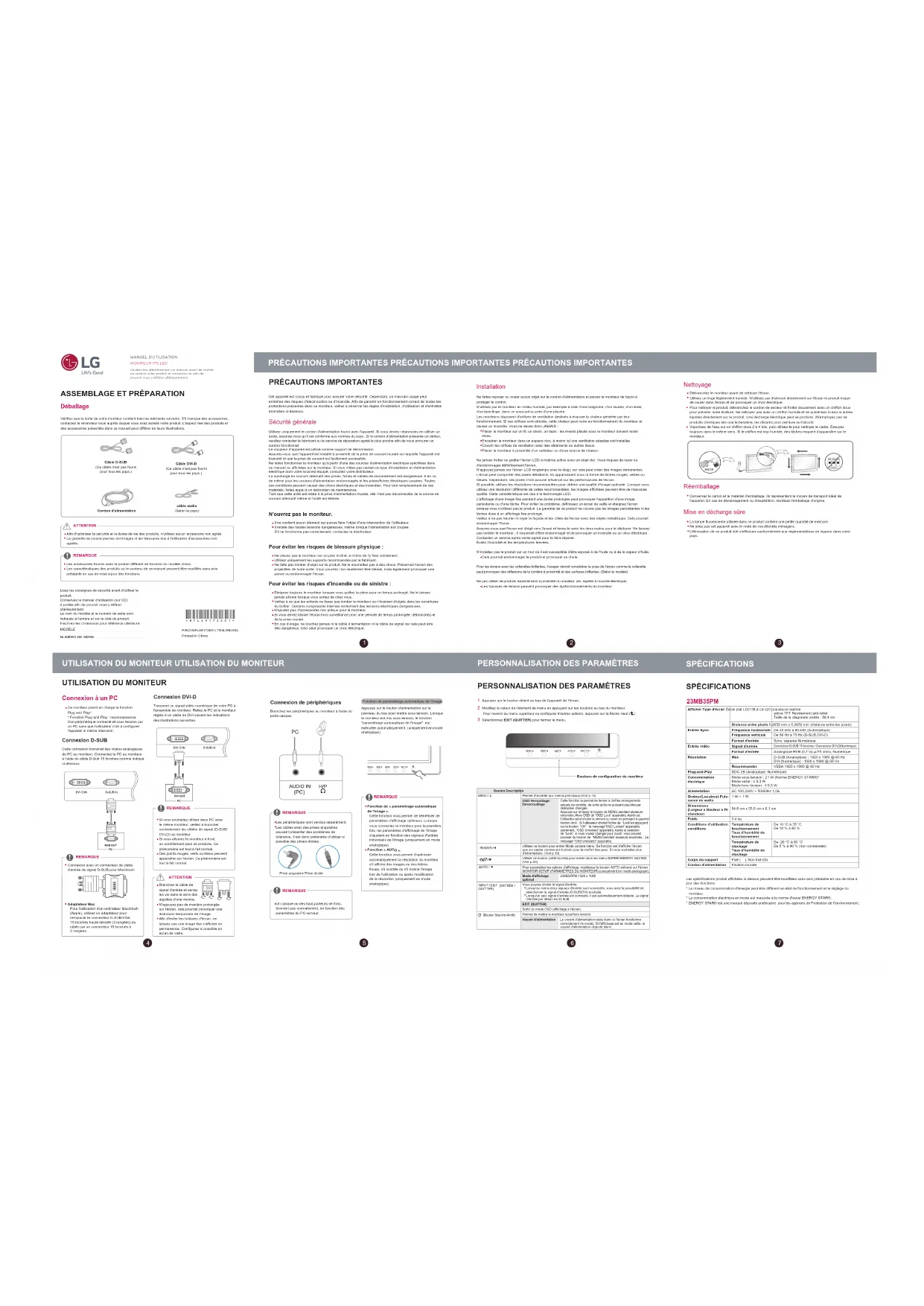 23MB35PM - Moniteur LG - Notice d'utilisation et mode d'emploi gratuit