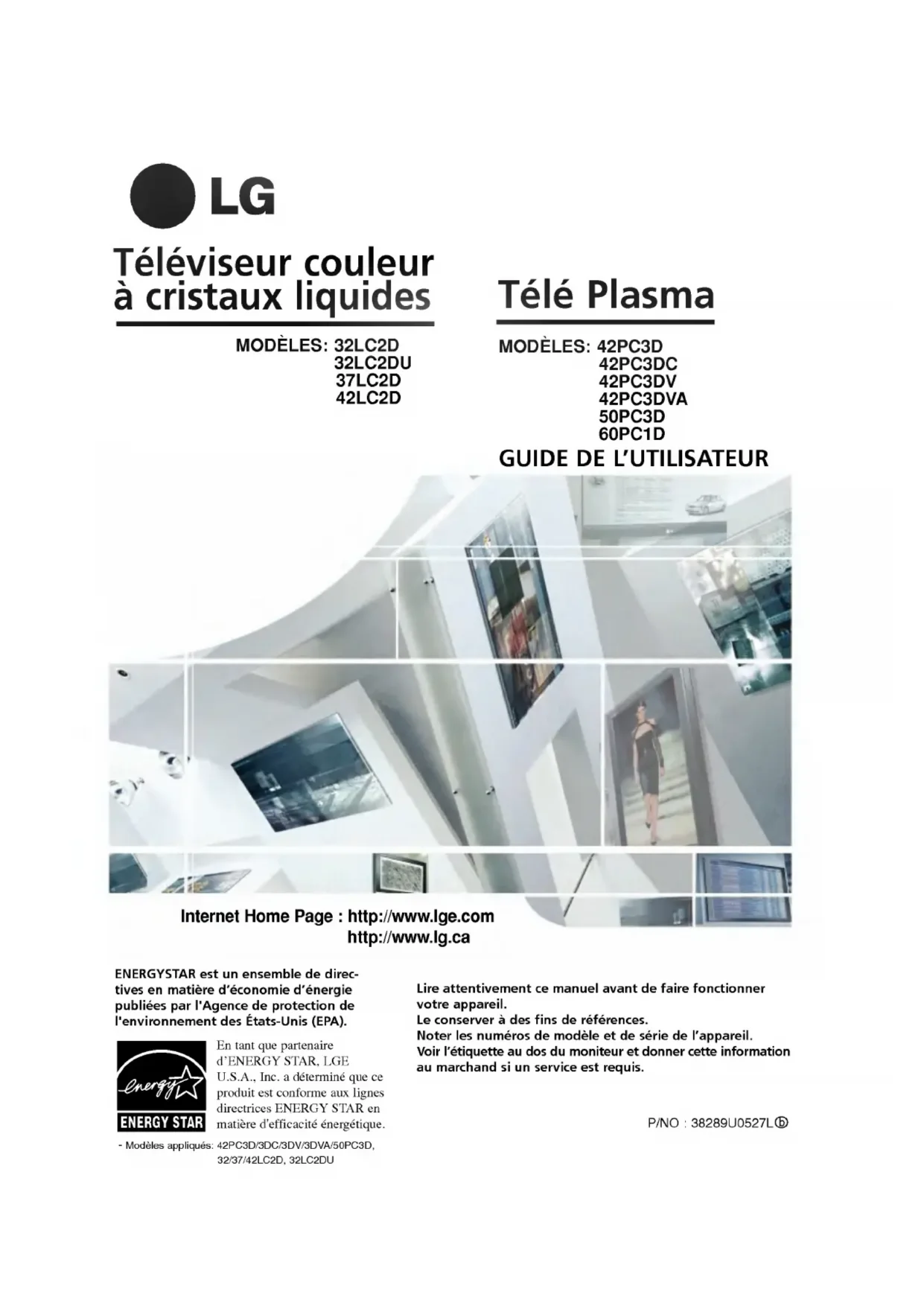 Retrouvez gratuitement la notice de l'appareil 60PC1D LG au format PDF.