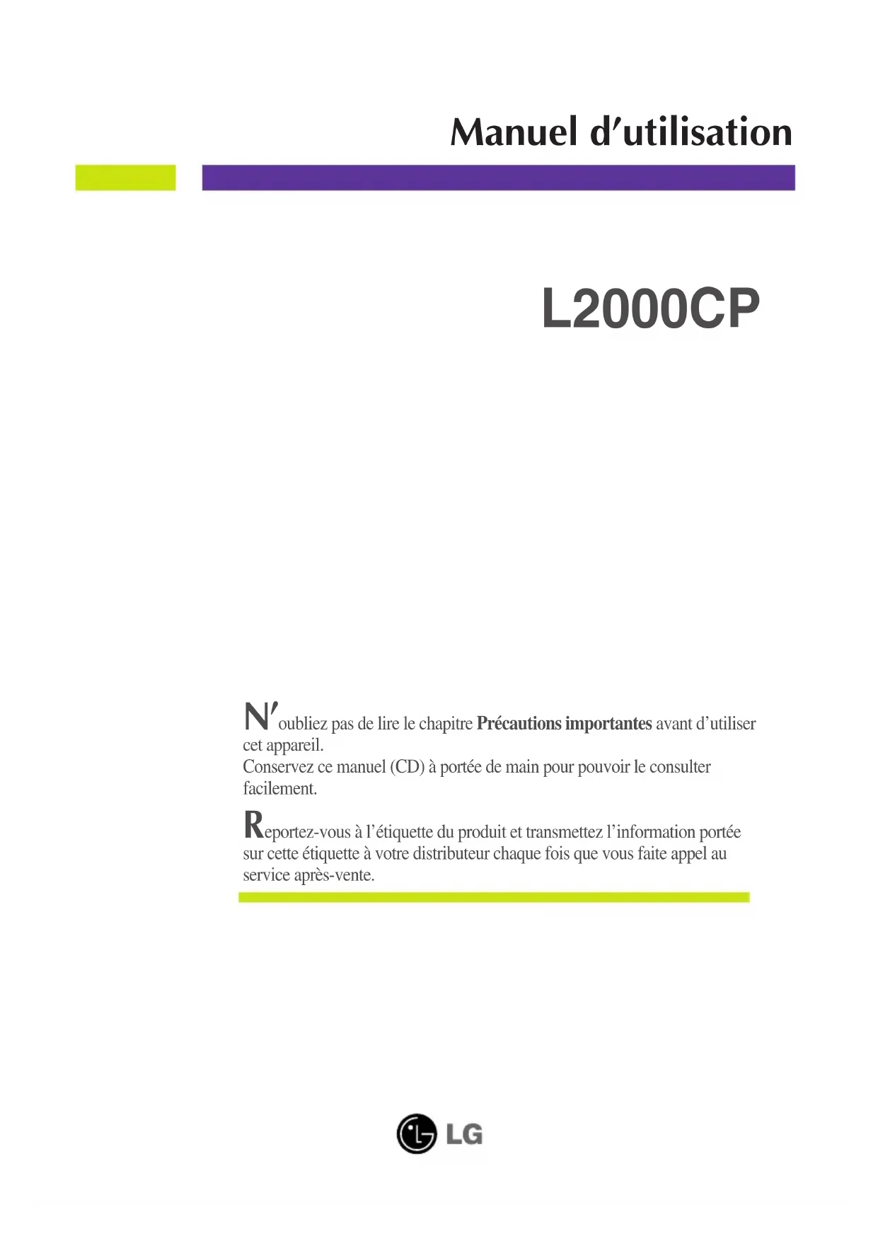 L2000CP-BF - Moniteur LG - Notice d'utilisation et mode d'emploi gratuit