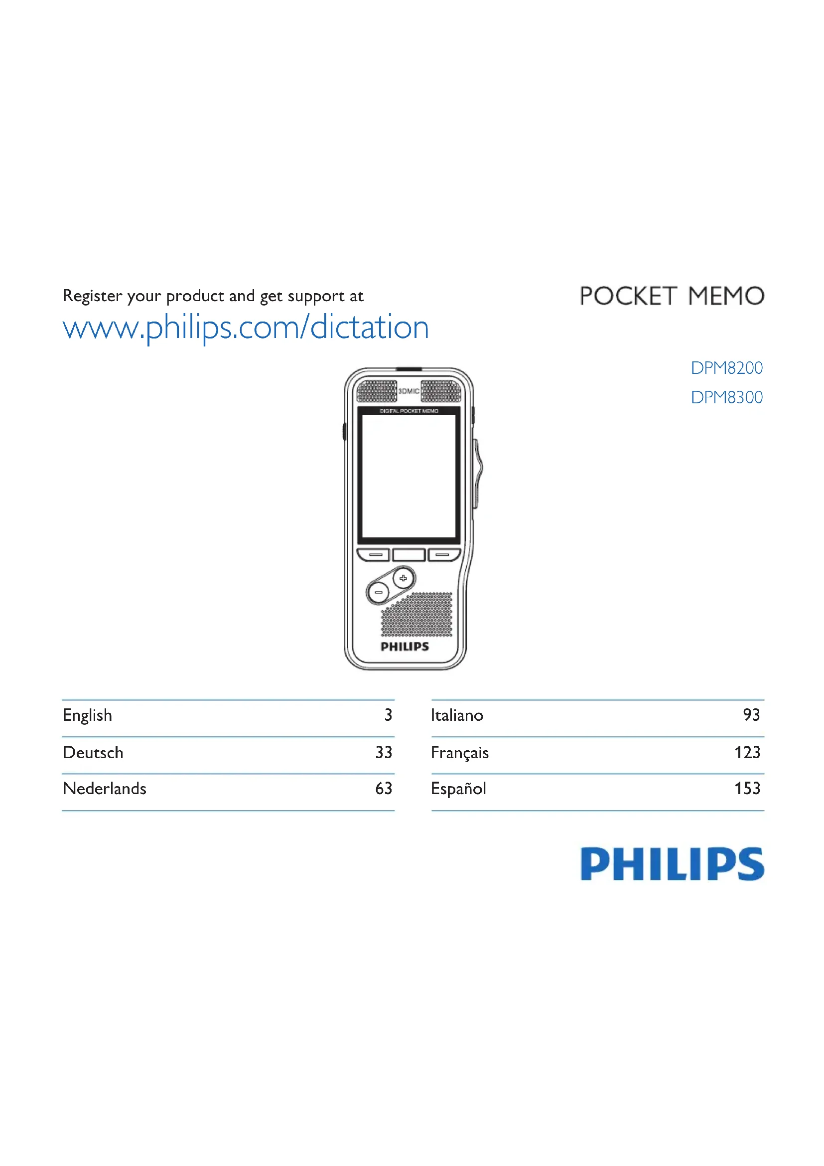Retrouvez gratuitement la notice de l'appareil Pocket Memo DPM8200 PHILIPS au format PDF.