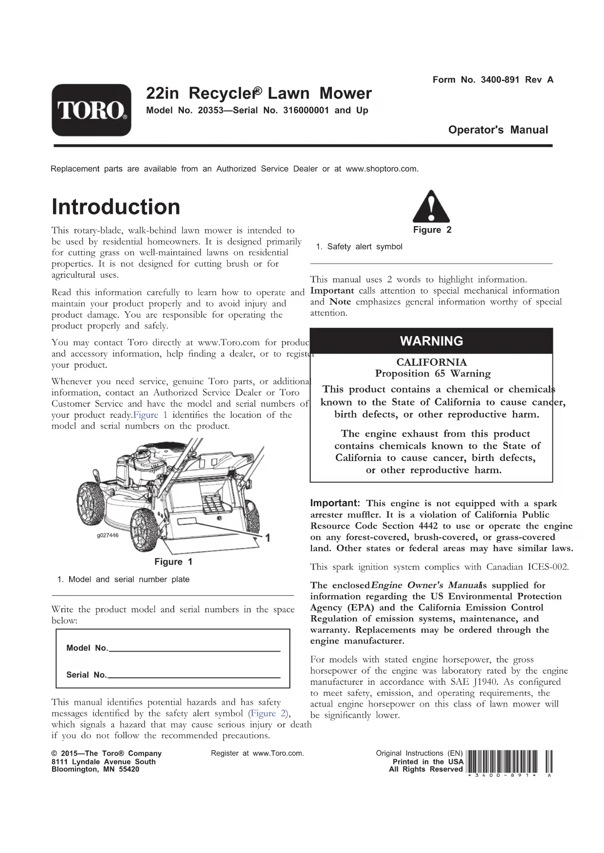 Retrouvez gratuitement la notice de l'appareil 20353 TORO au format PDF.