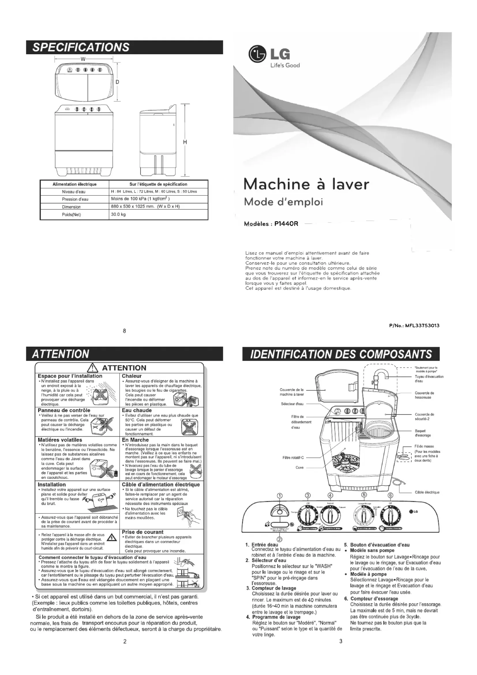 P1440R - Machine à laver LG - Notice d'utilisation et mode d'emploi gratuit