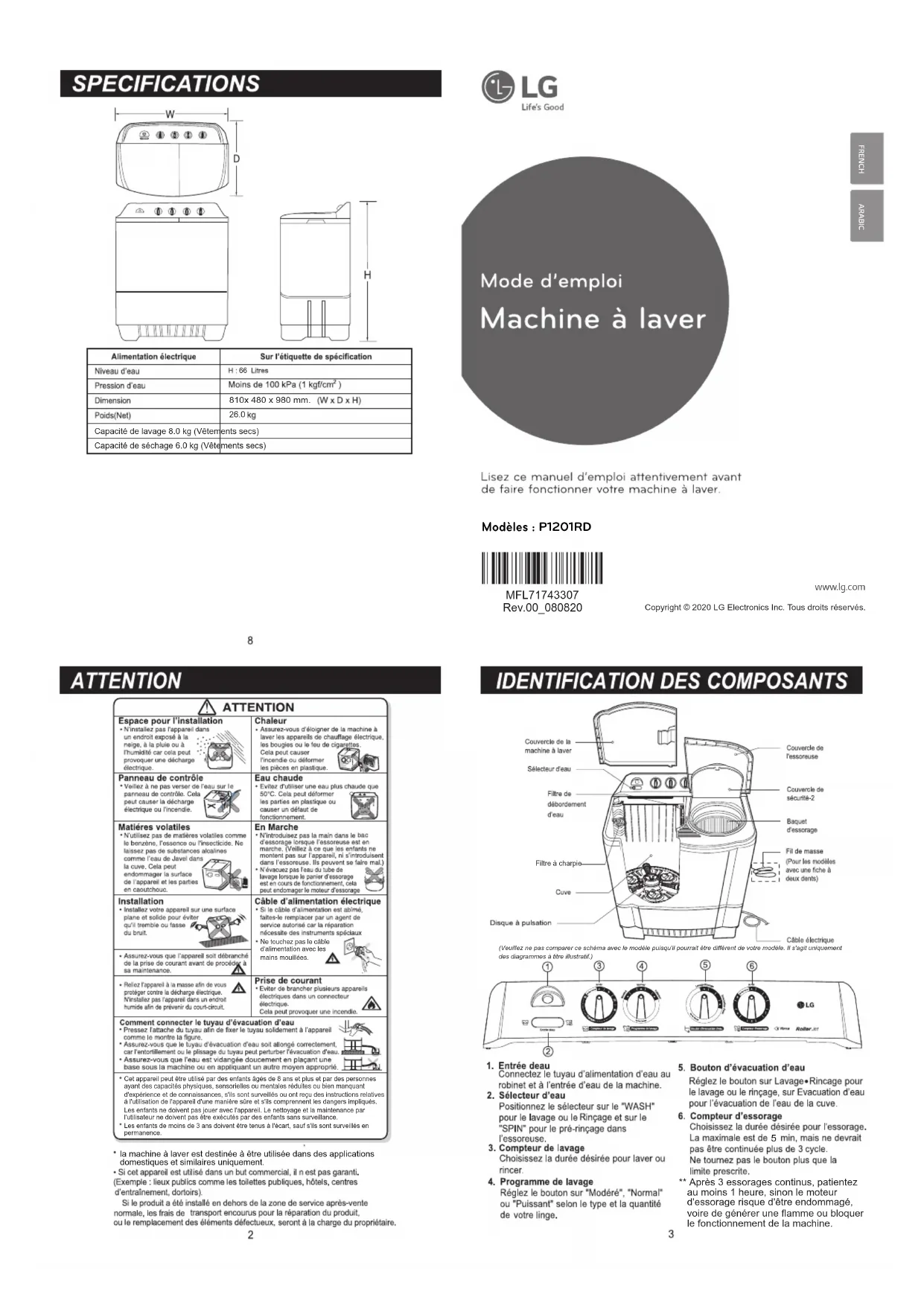 P1201RD - Machine à laver LG - Notice d'utilisation et mode d'emploi gratuit
