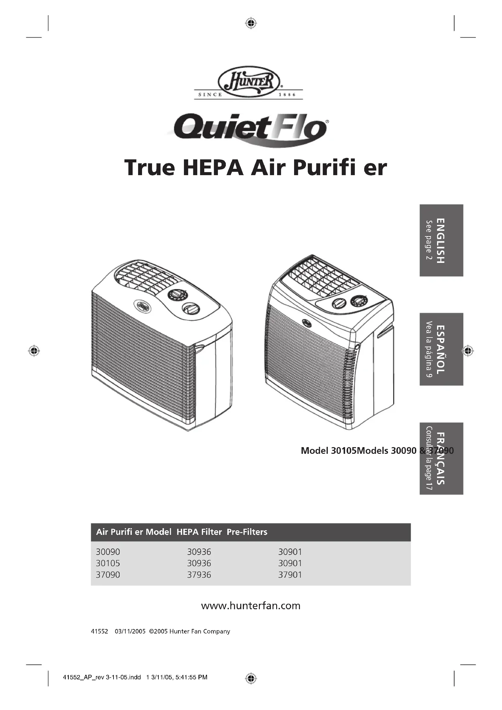 Retrouvez gratuitement la notice de l'appareil QuietFlo 30090 HUNTER au format PDF.