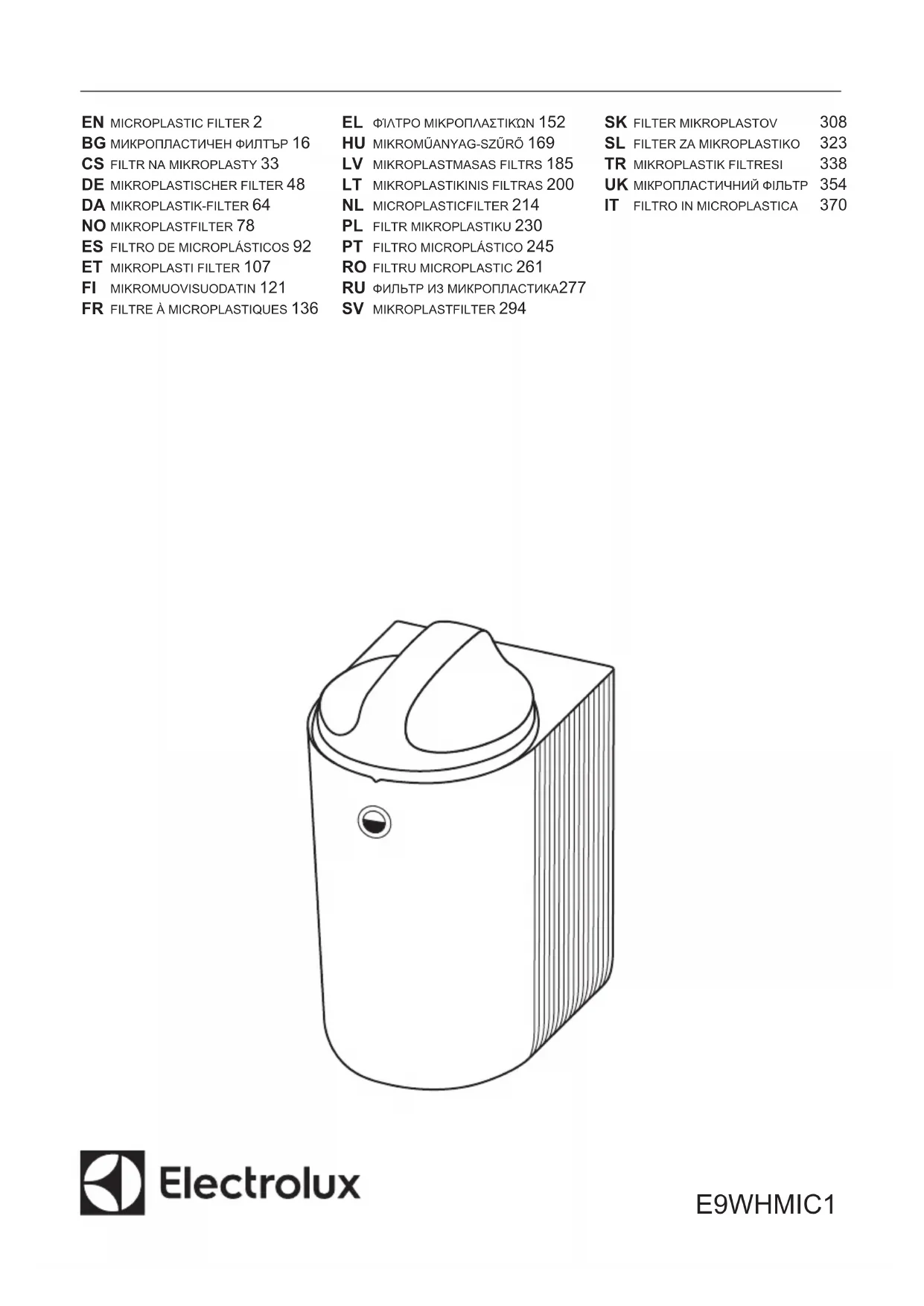 AVERTISSEMENT! Reportez-vous aux chapitres concernant la sécurité. Visitez electrolux.com/ getstarted/microplasticfilters pour les vidéos d’installation et d’utilisation.
