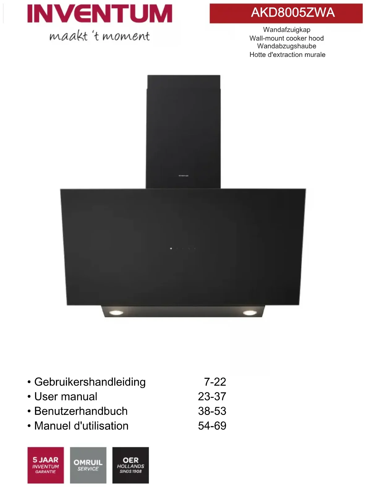 AKD8005ZWA - Hotte INVENTUM - Notice d'utilisation et mode d'emploi gratuit