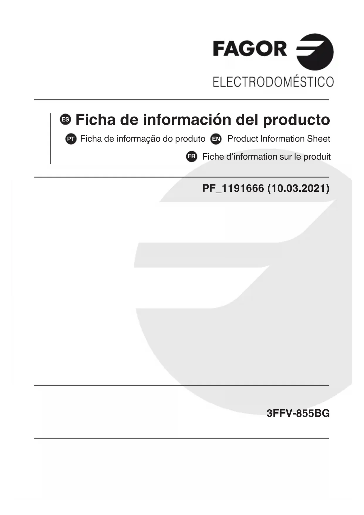 Retrouvez gratuitement la notice de l'appareil 3FFV-855BG FAGOR au format PDF.
