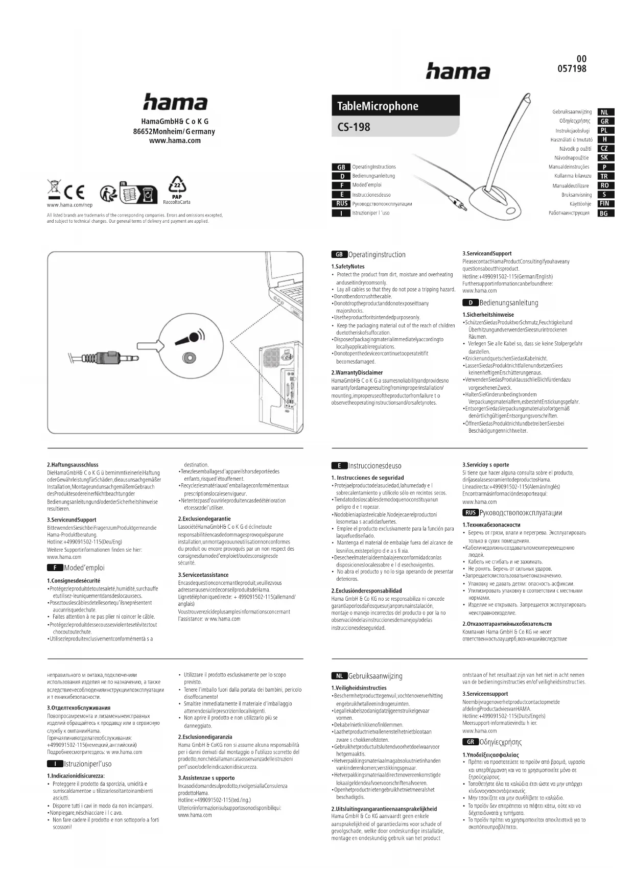 Retrouvez gratuitement la notice de l'appareil CS-198 HAMA au format PDF.