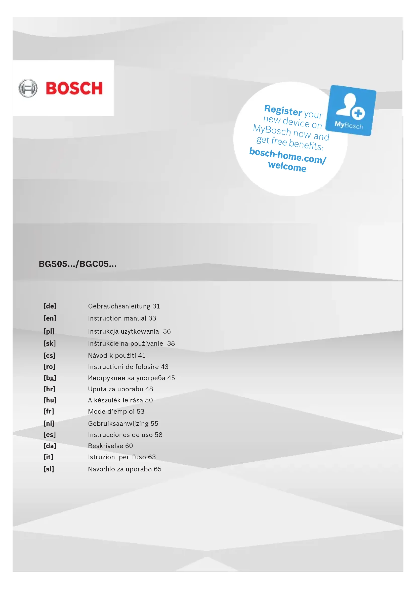 Retrouvez gratuitement la notice de l'appareil BGS05BL1H BOSCH au format PDF.
