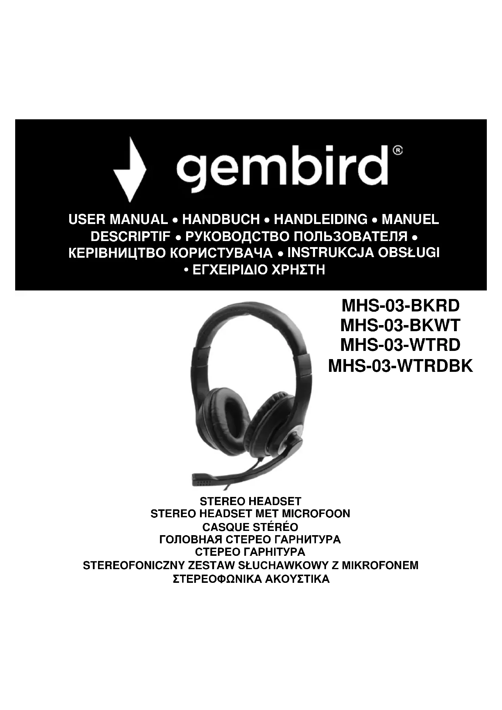 MHS-03-BKWT - Casque Gembird - Notice d'utilisation et mode d'emploi gratuit