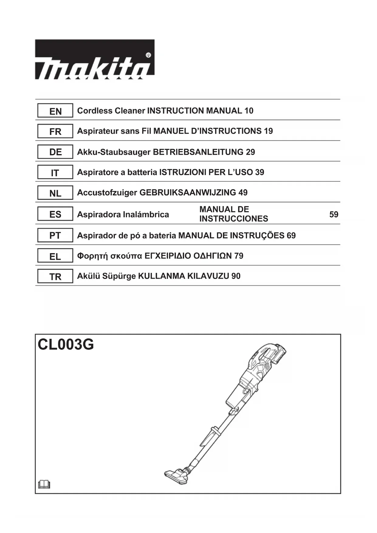 Retrouvez gratuitement la notice de l'appareil CL003G MAKITA au format PDF.