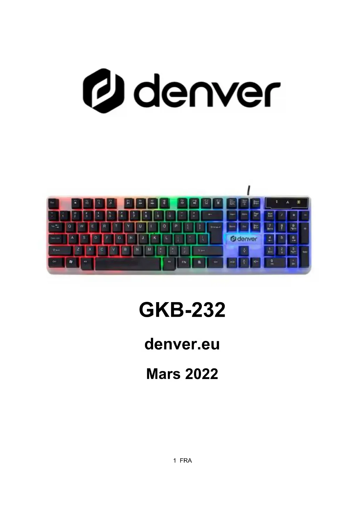 GKB-232 denver.eu Mars 20222 FRA Consignes de sécurité Lisez attentivement les consignes de sécurité avant d’utiliser le produit pour la première fois et conservez-les pour référence ultérieure.