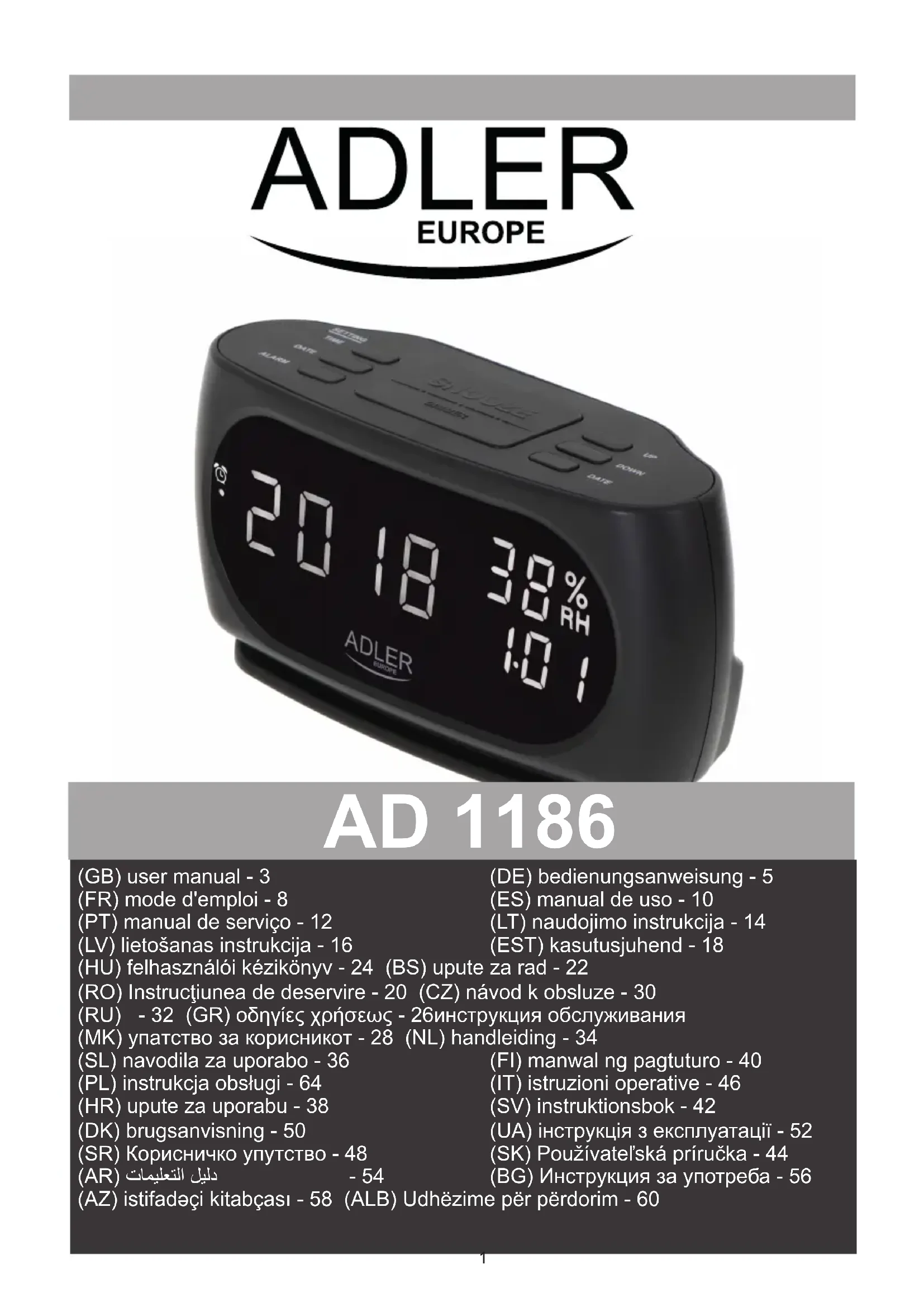 AD 1186 - Radio-réveil ADLER - Notice d'utilisation et mode d'emploi gratuit