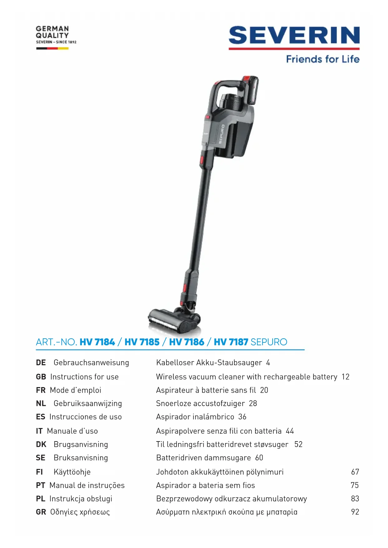HV 7185 - Balai SEVERIN - Notice d'utilisation et mode d'emploi gratuit