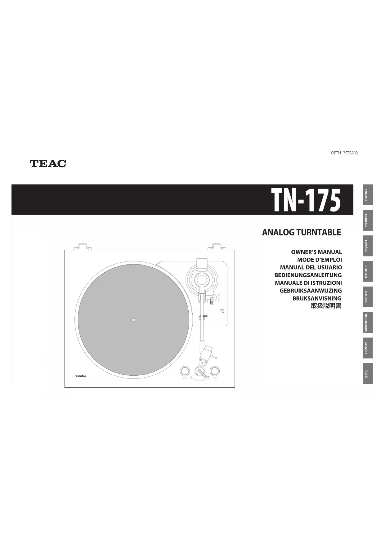 Retrouvez gratuitement la notice de l'appareil TN-175 TEAC au format PDF.