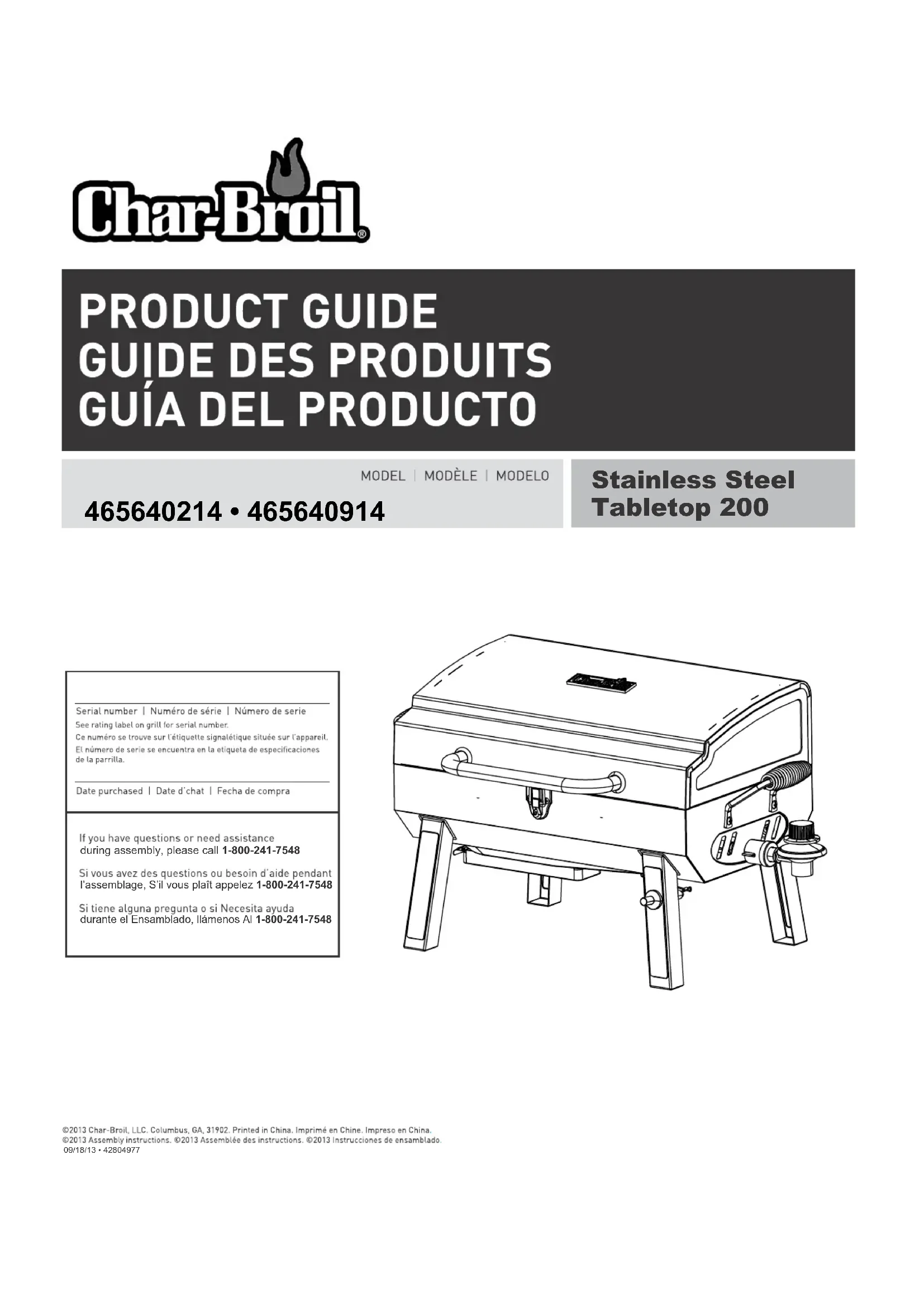 Retrouvez gratuitement la notice de l'appareil 465640214 Char-Broil au format PDF.