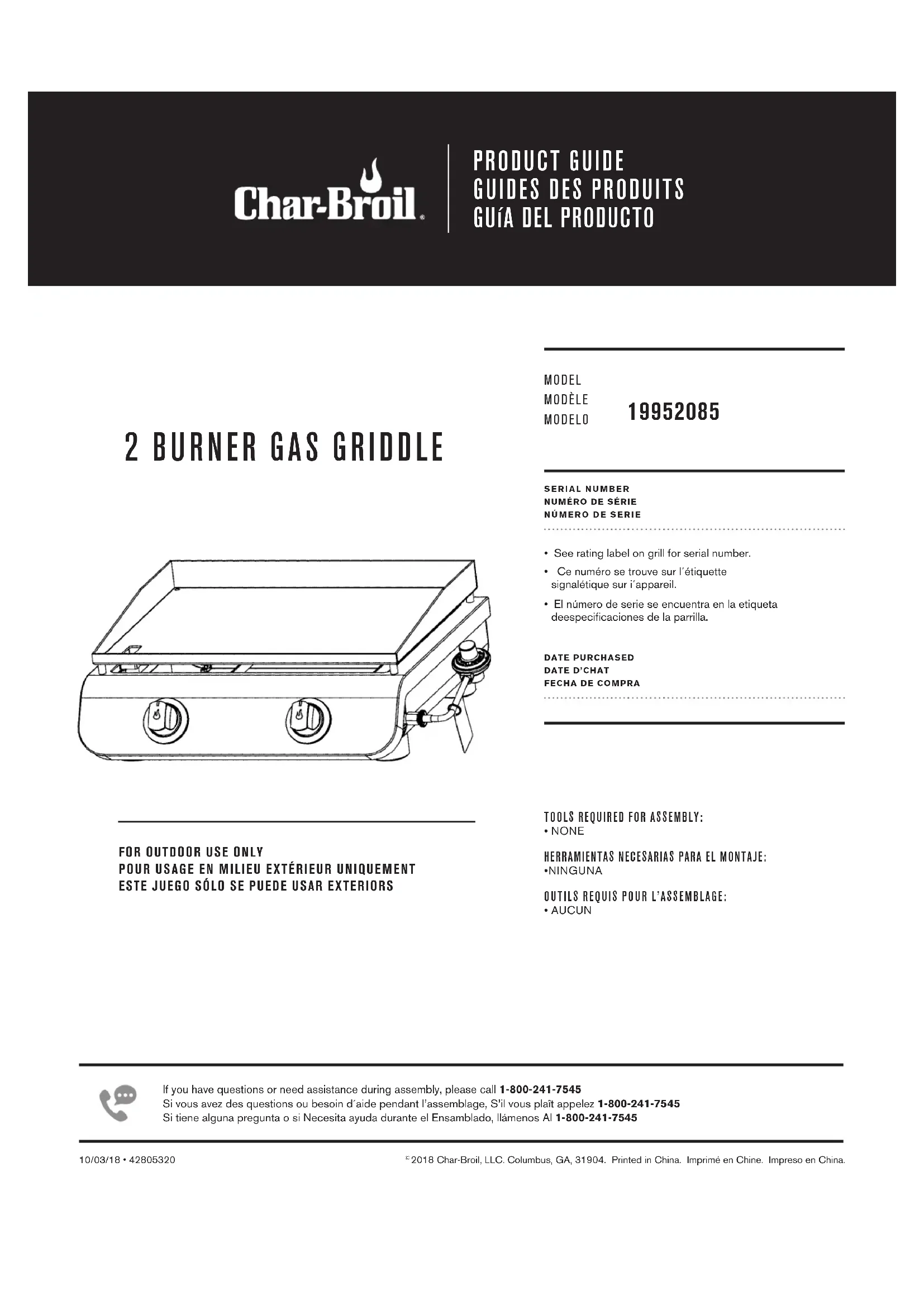 Retrouvez gratuitement la notice de l'appareil 19952085 Char-Broil au format PDF.