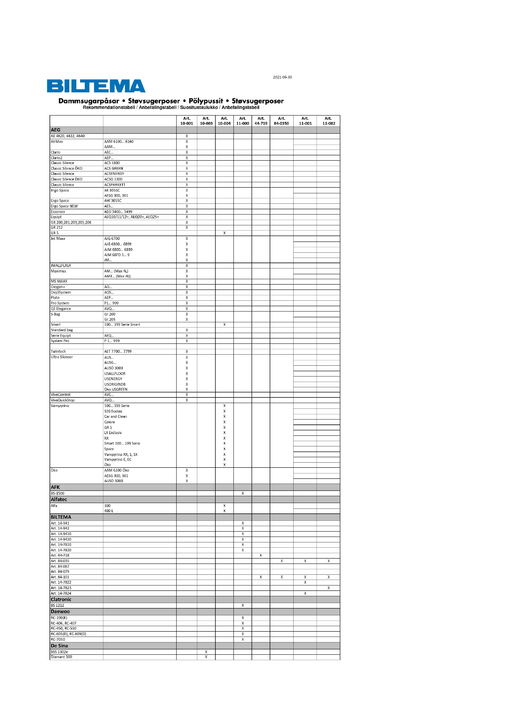 FOIRE AUX QUESTIONS - 10-001 Biltema