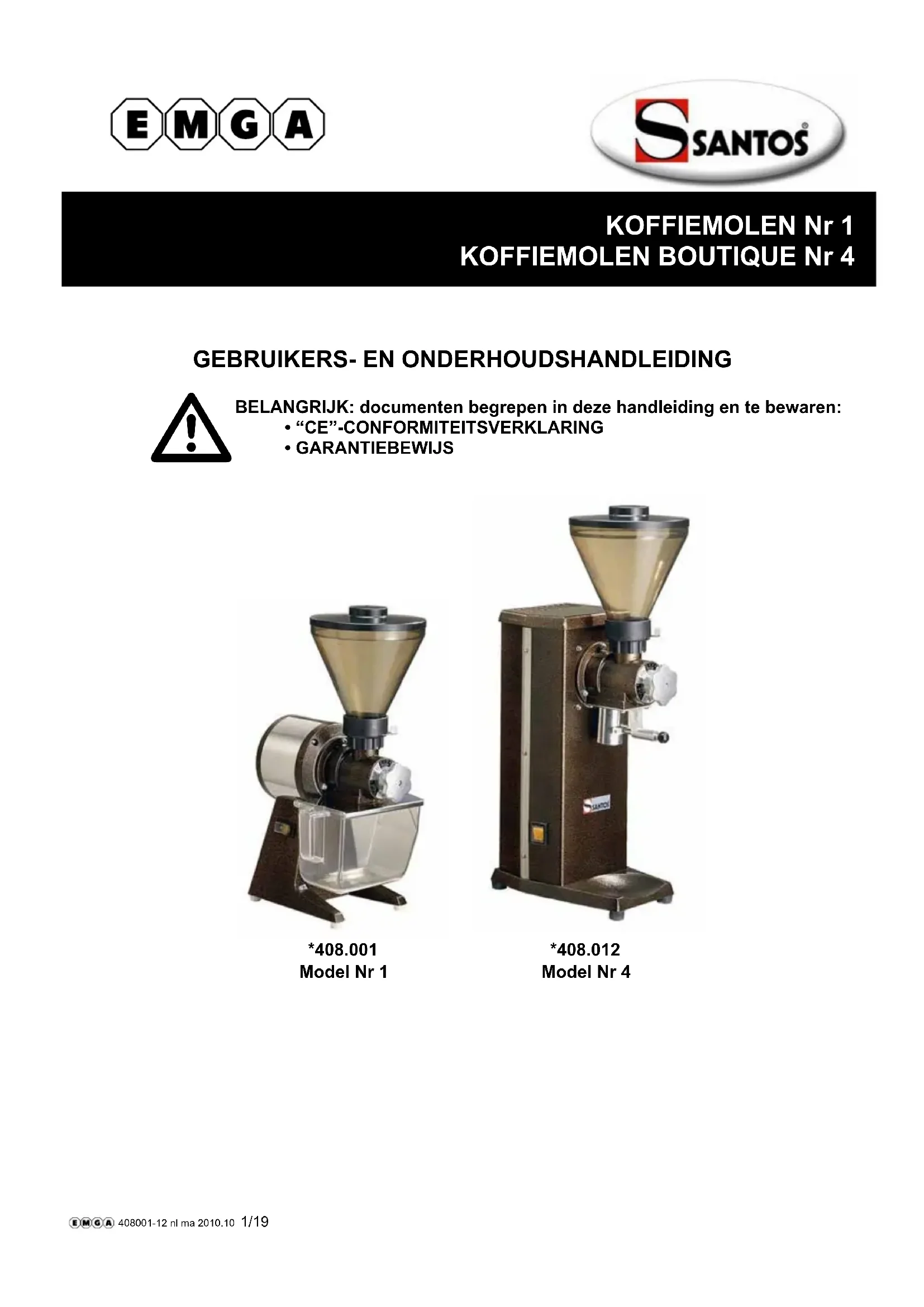 N° 1 - Moulin à café Santos - Notice d'utilisation et mode d'emploi gratuit