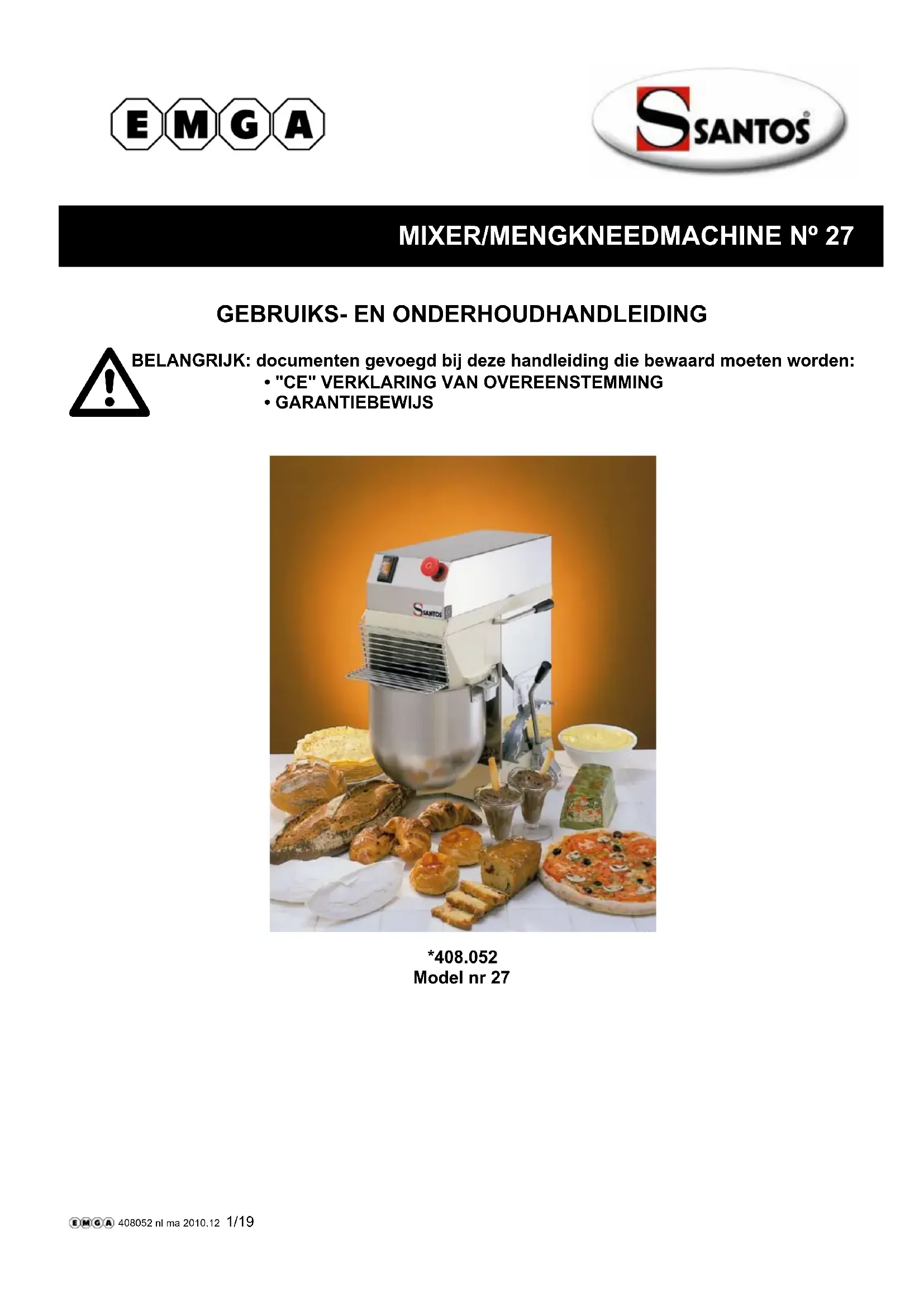 Téléchargez la notice de votre Robot ménager au format PDF gratuitement ! Retrouvez votre notice N° 27 - Santos et reprennez votre appareil électronique en main. Sur cette page sont publiés tous les documents nécessaires à l'utilisation de votre appareil N° 27 de la marque Santos.