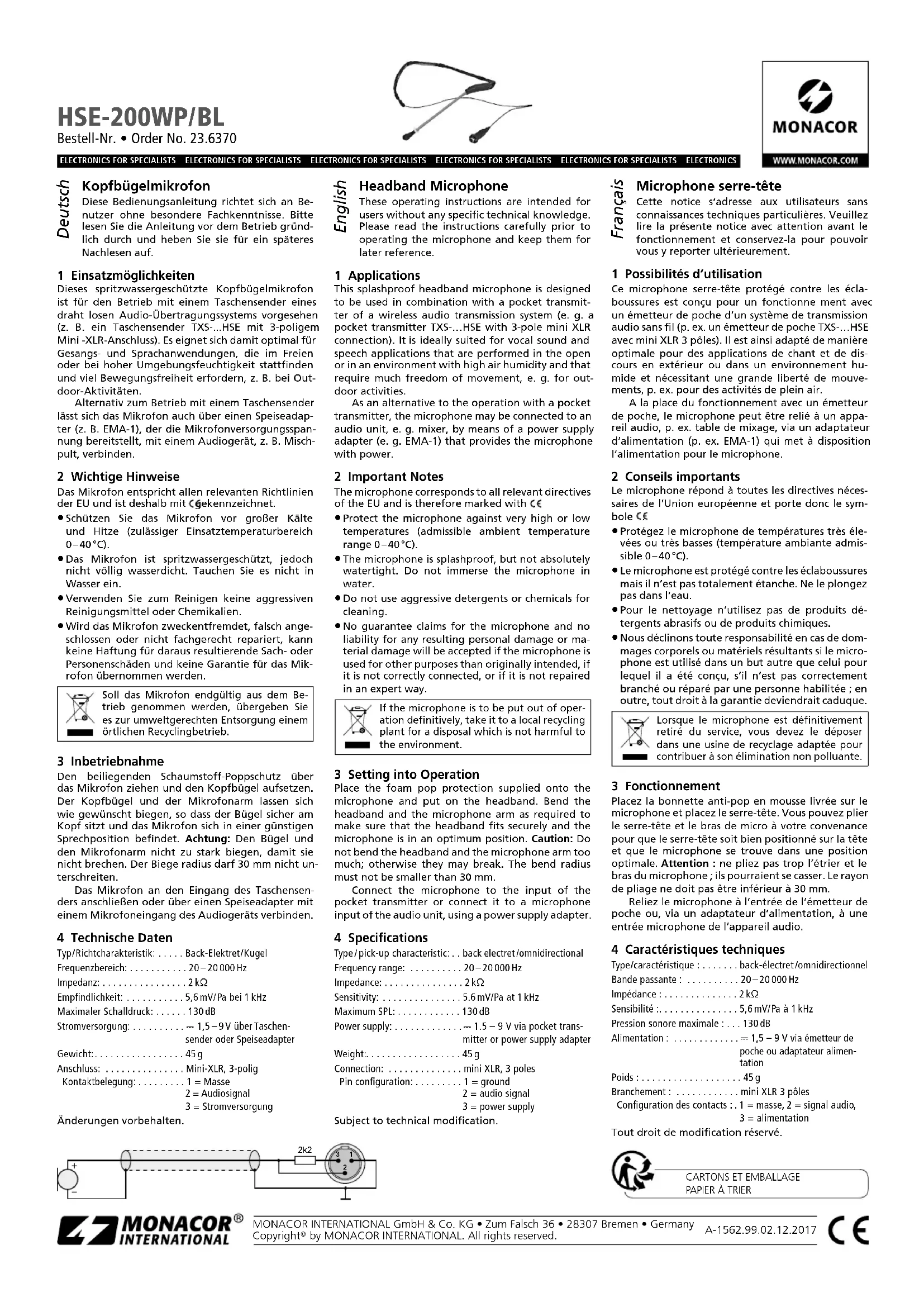 Retrouvez gratuitement la notice de l'appareil HSE-200WP/BL Monacor au format PDF.